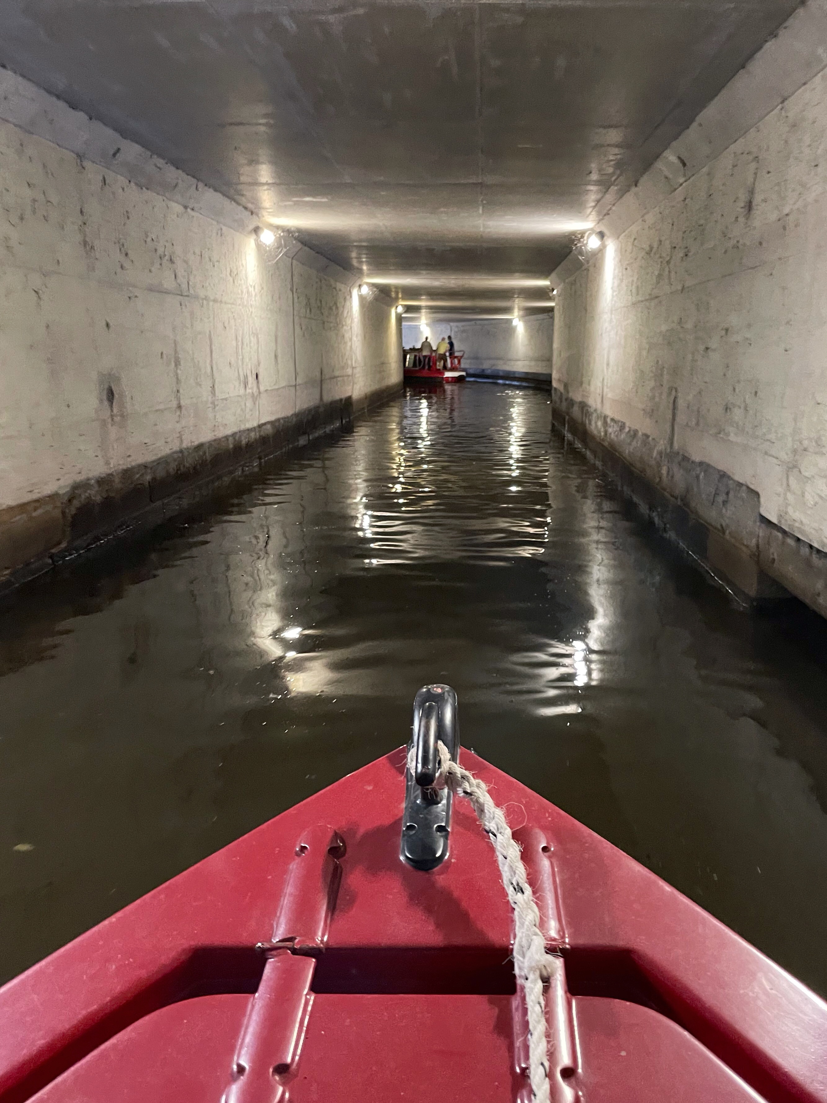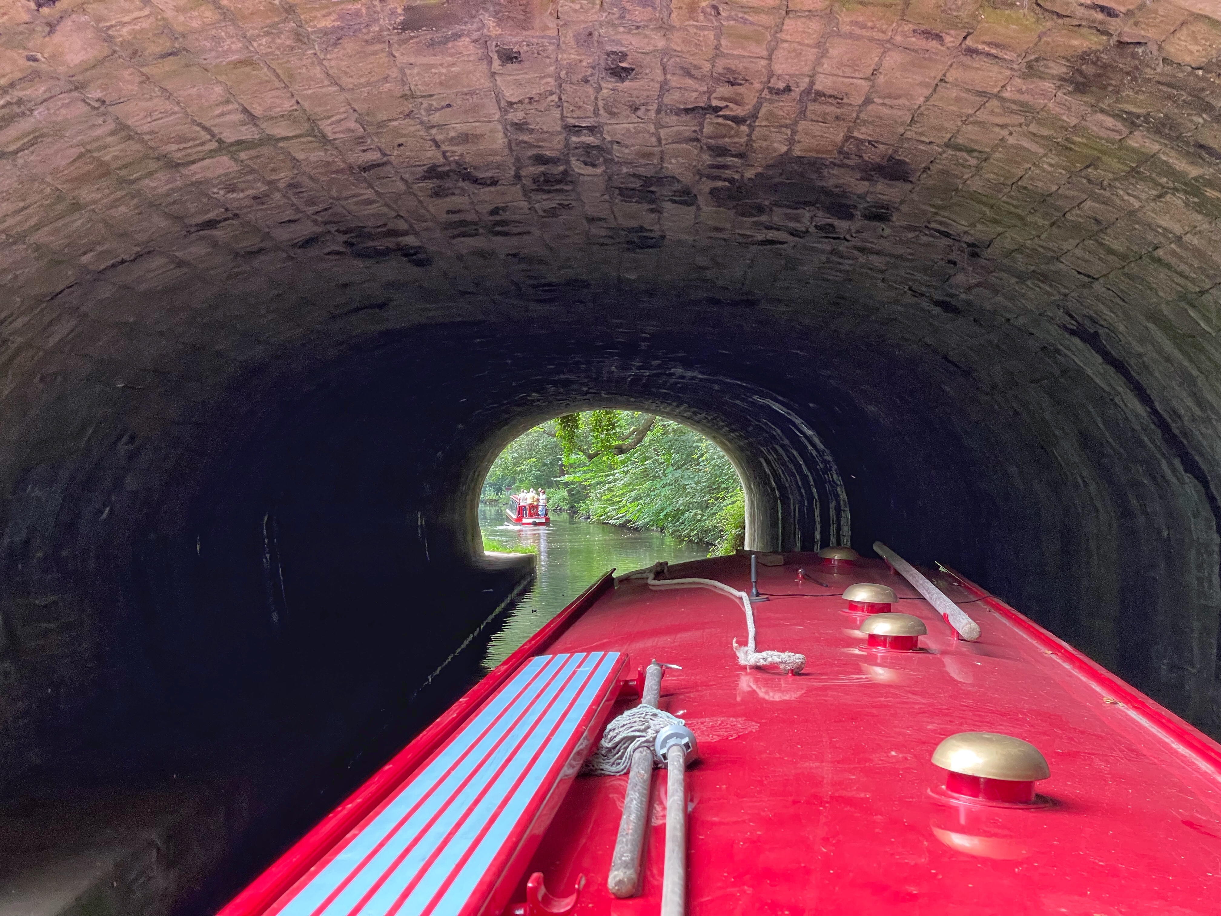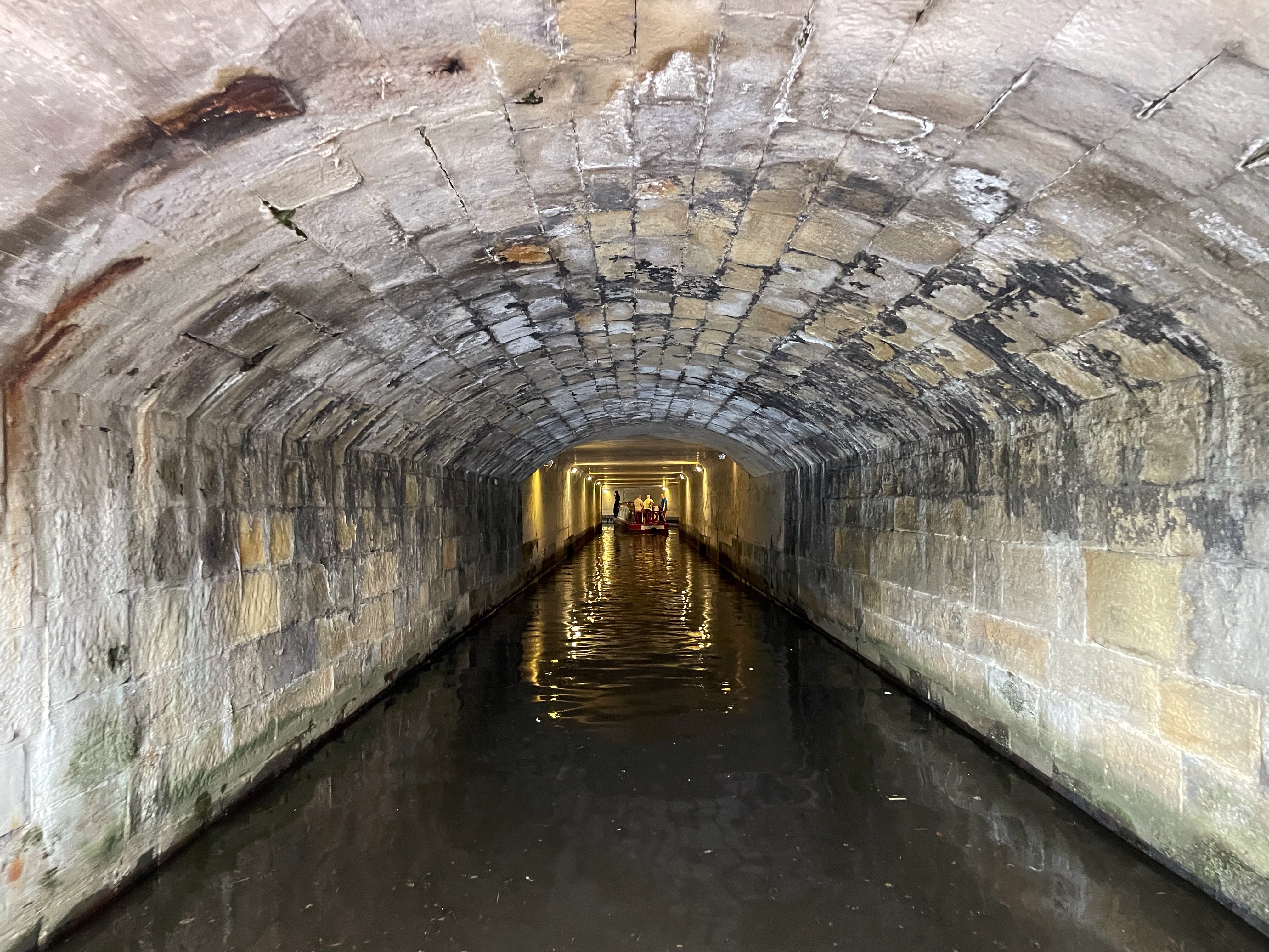 After going through a second lock we reached Tuel Lane Tunnel under the main road. This was fun. Because it has a bend in it and is quite long, you can’t see if another boat is coming towards you. Therefore we had to wait for a whistle from the lock keepers at the next lock, before we could go through it.