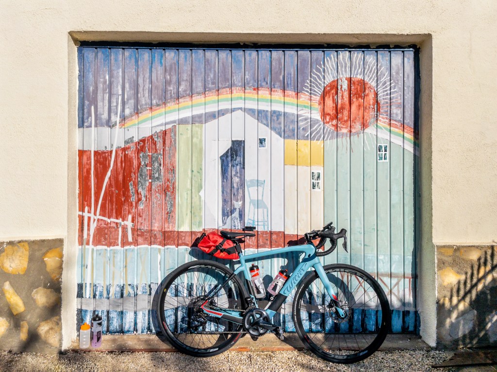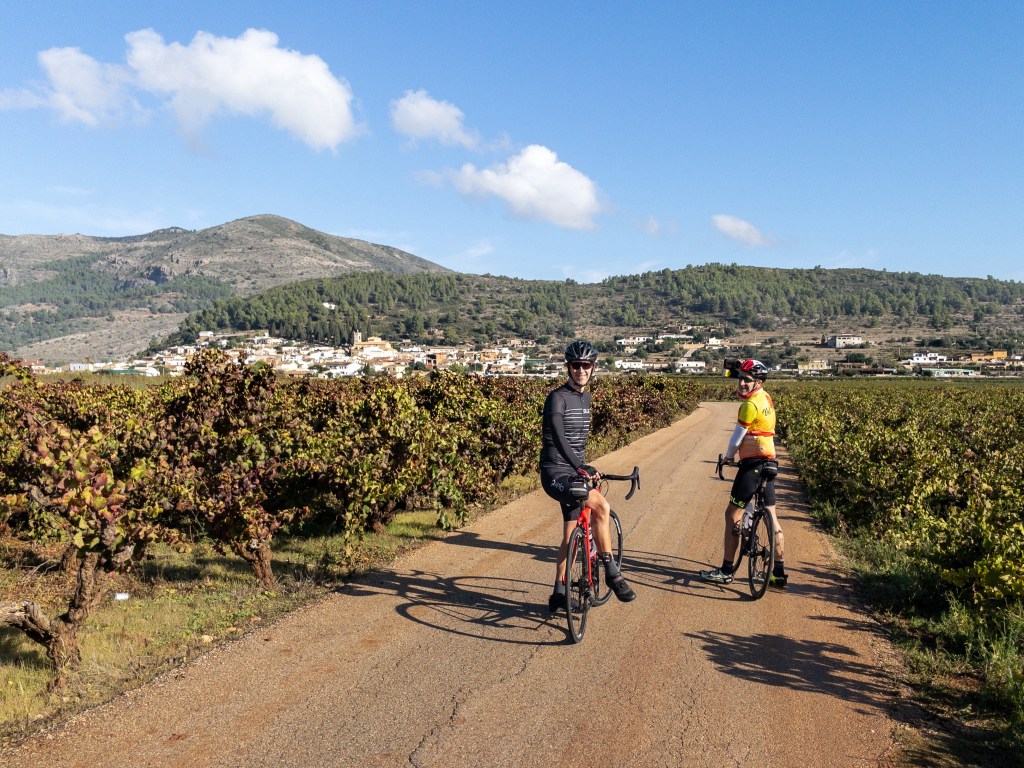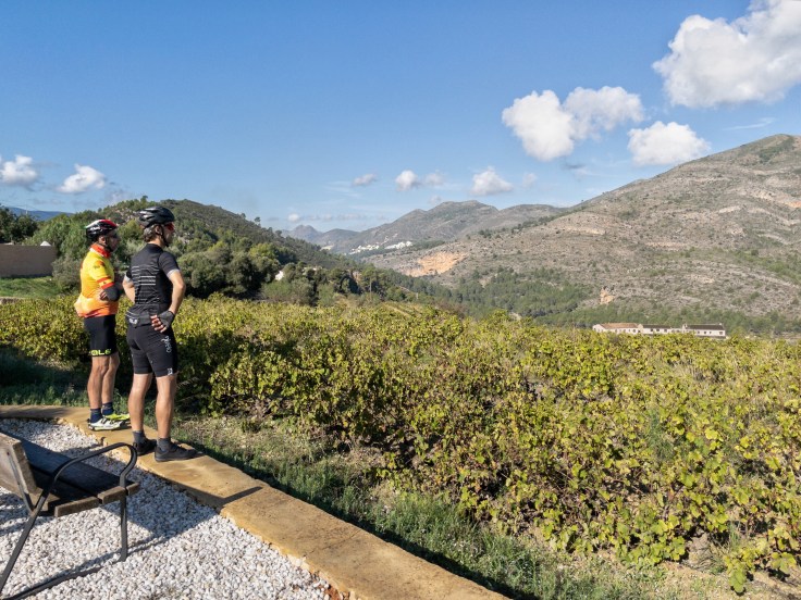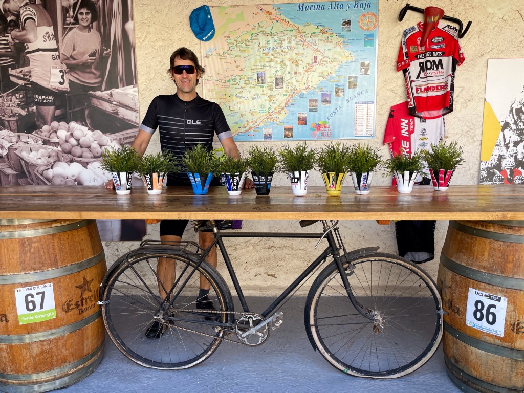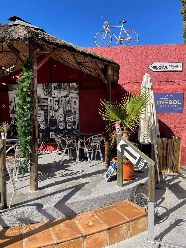 After this, we headed back downhill and along the valley to Jalon, or Xalo in Valencian. Here we stopped at a cafe bar for cyclists, which is decorated in a quirky way. Cycling shirts, bottles and bikes adorn the walls and and ceilings, and a table at the back has been signed by famous cyclists who have trained in the Xalo Valley.