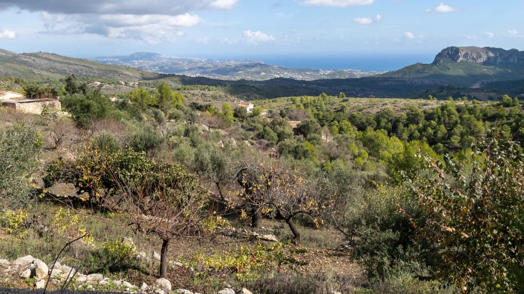 From Puerto de Bernia, it wasn’t far to the restaurant, perched on the top of a hill with the most amazing view to the coast. Apparently on a clear day it’s possible to see Ibiza! The scenery all the way up was spectacular and reminded us of the Dolomites, with limestone outcrops towering above green forested slopes.