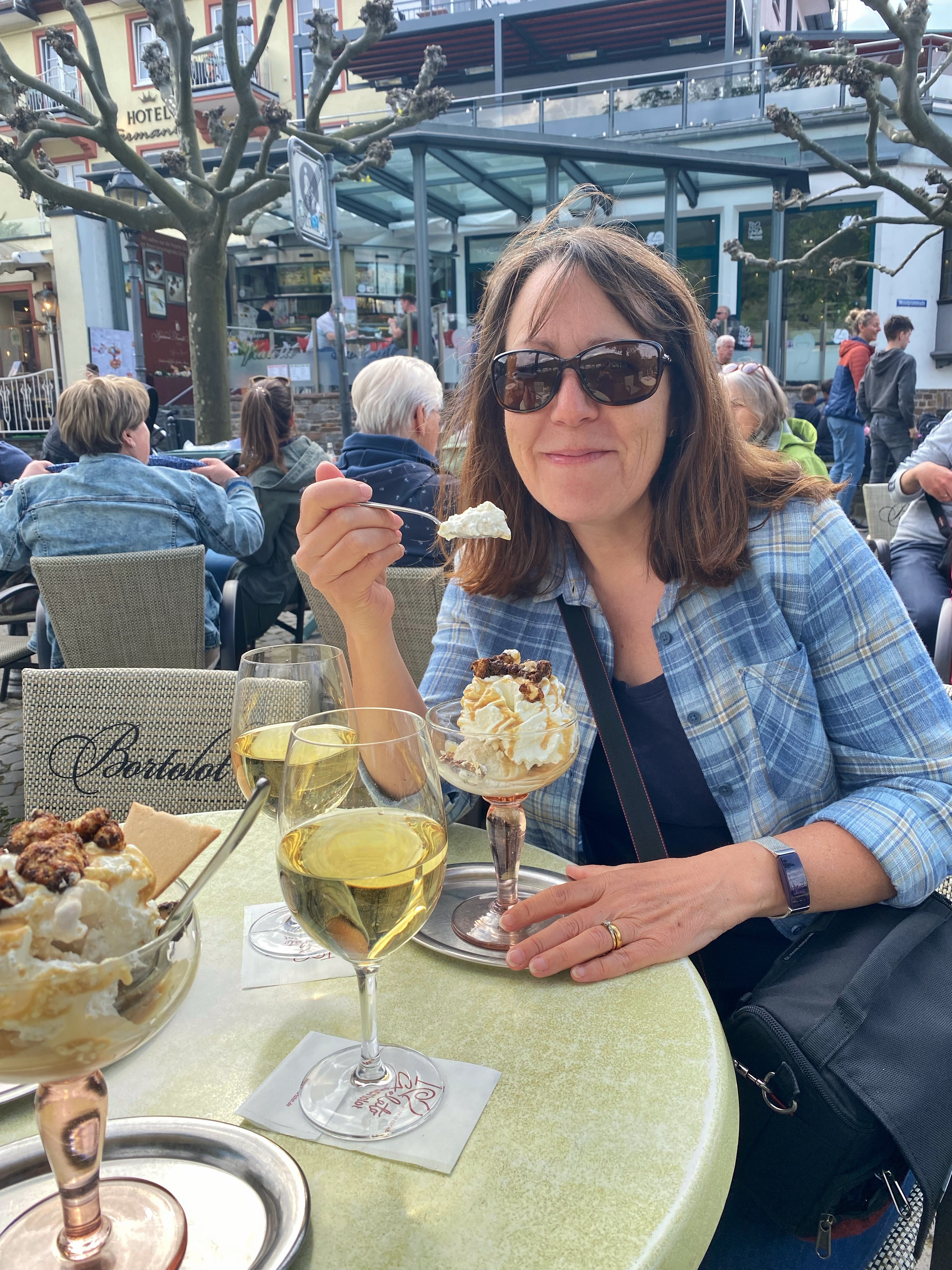 I decided I’d earned an ice cream and glass of wine after all that walking so we stopped at a cafe at one of the squares back in town. Then we thought we’d better book somewhere for dinner, intending to return later in the evening. However, while looking at places, we ended up on a first floor restaurant terrace, sitting down for a three course meal straight away… soon after the ice cream! Thankfully dinner was a leisurely affair and the courses weren’t huge, so we fitted it all in! I’ll probably need to lose weight when we get home! We had a lovely last day though, spoiling ourselves.