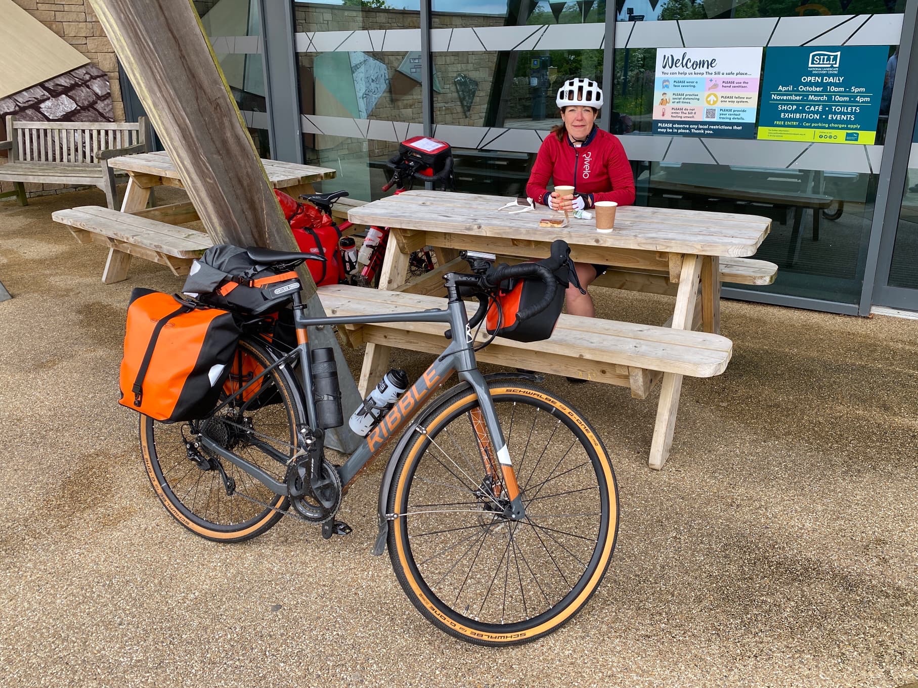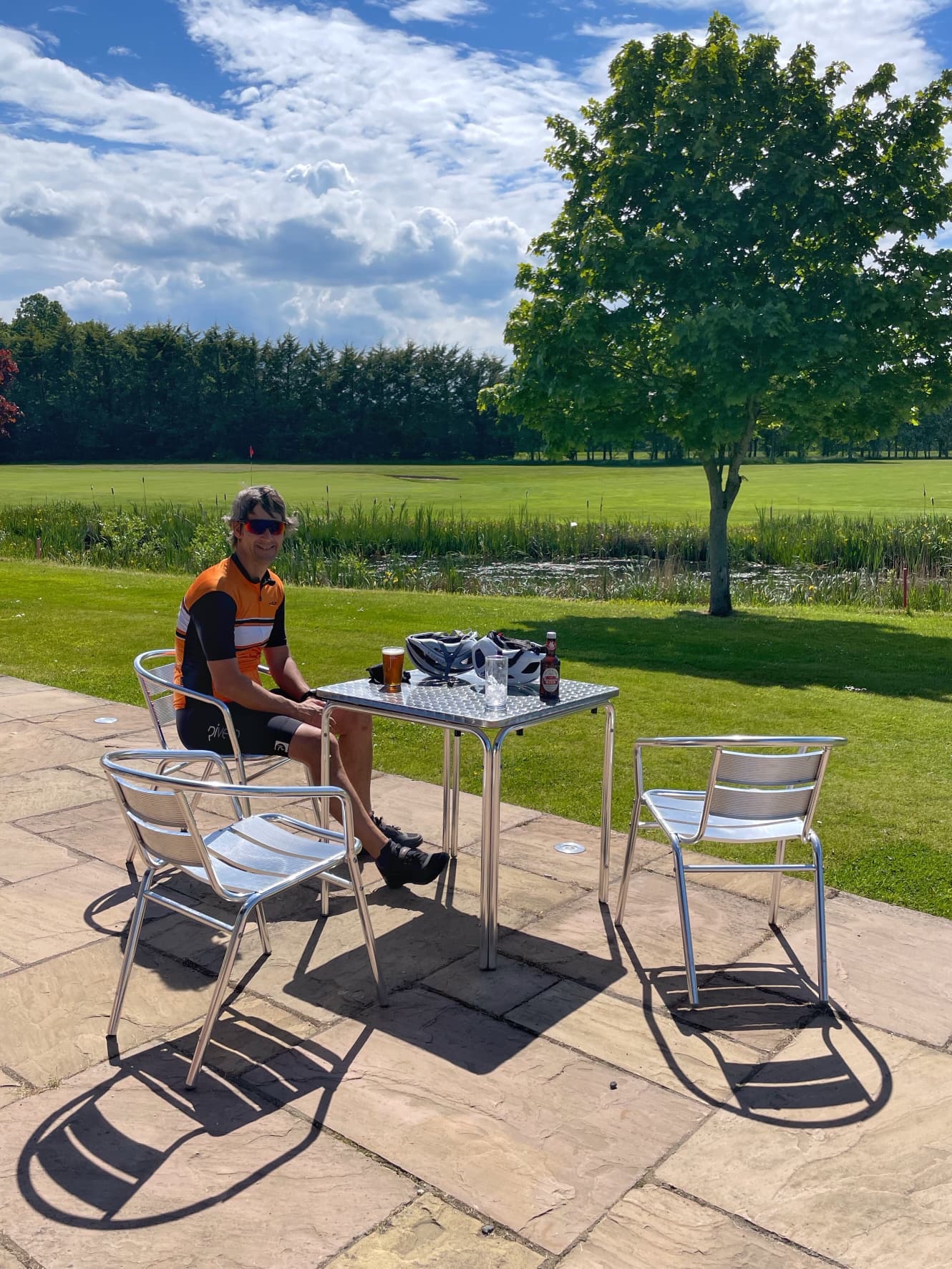 There was just one more big climb out of Brampton before the ride became more gentle past fields and through villages. By now my legs were aching and I was using my bike’s motor more, while still trying to conserve the battery. I complained to John that my under carriage was feeling sore, and he admitted to the same issue. Despite only having 6 miles to go, I insisted on a break. Thankfully, John had just seen a sign for a tearoom at Eden Golf Club.