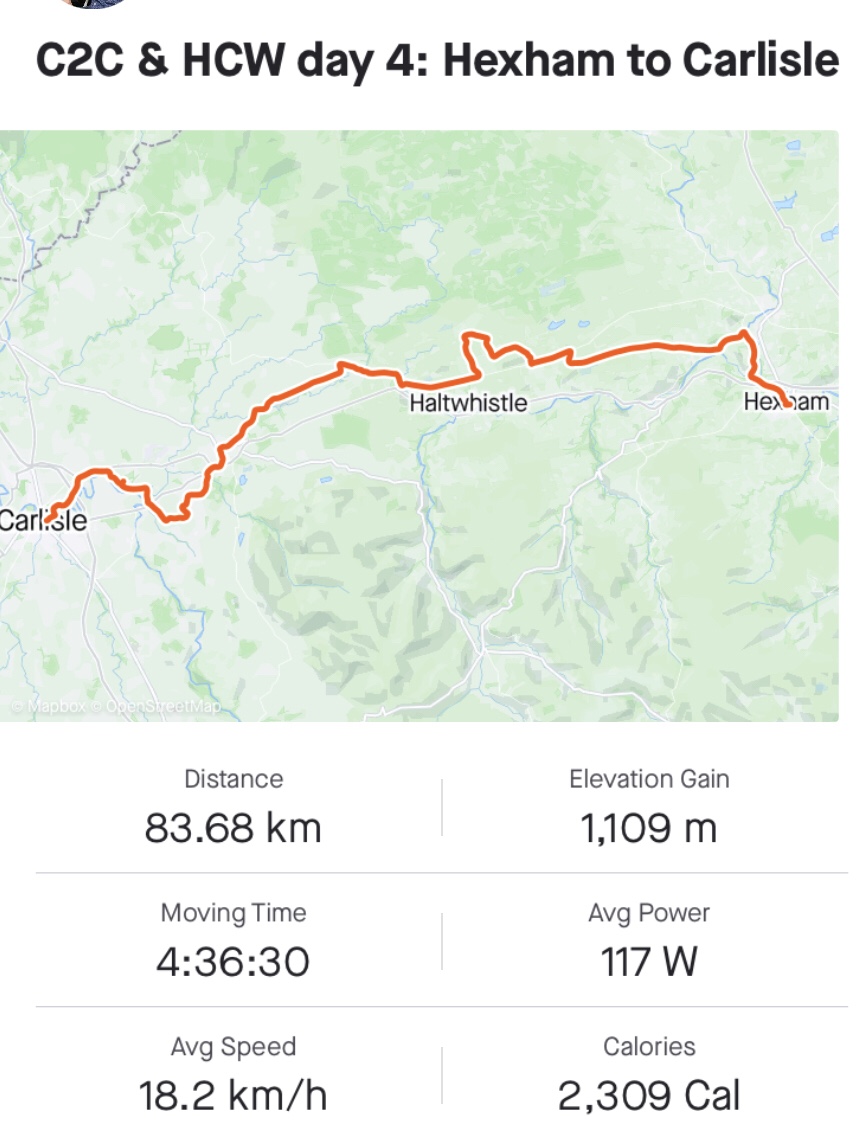 What a beautiful day! Hadrian’s Wall Cycleway didn’t disappoint and the weather was perfect. The only downside today was our sore nether regions, which made bumpy sections of the route particularly challenging 😆.
