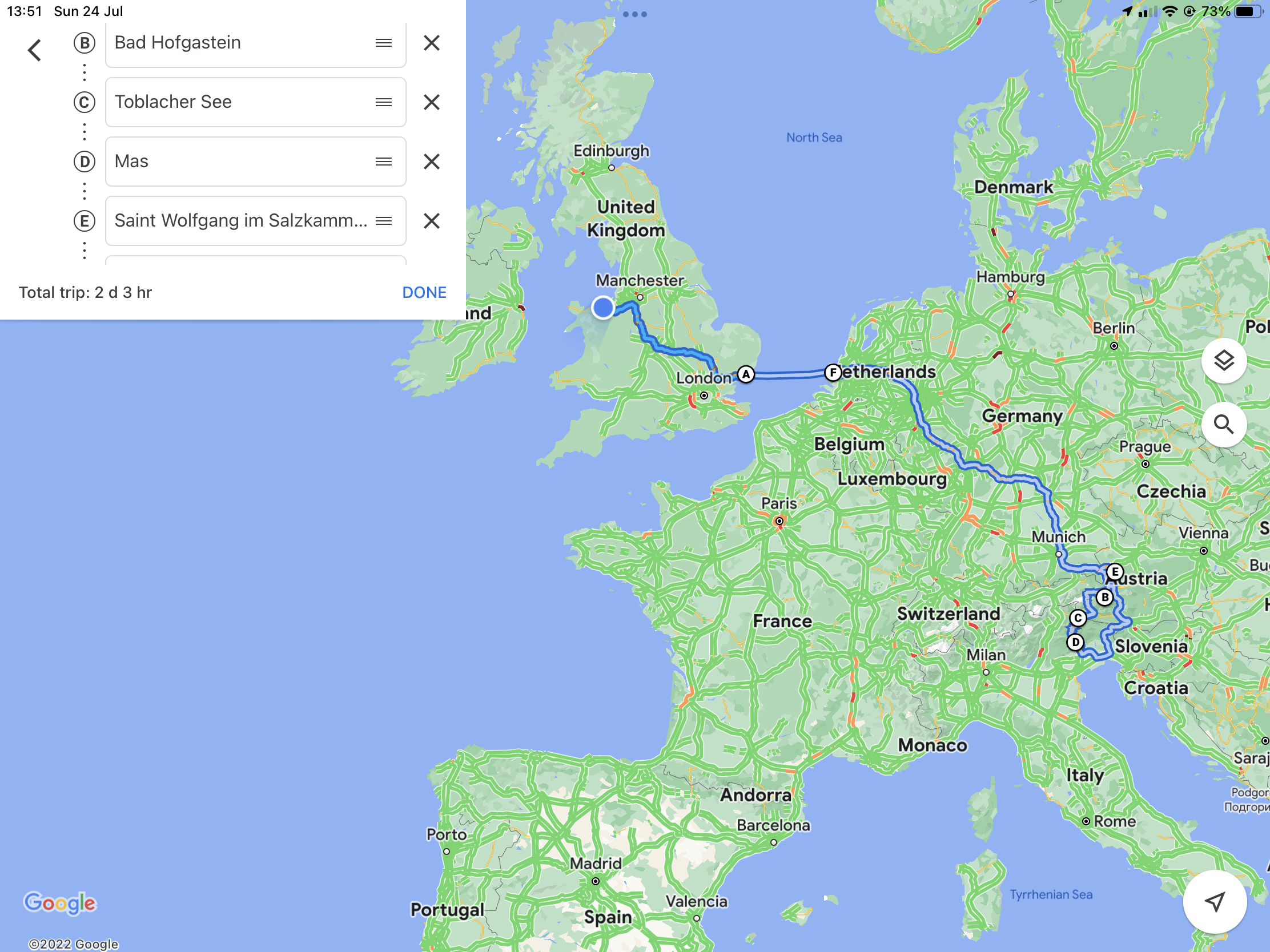 So… we’ve packed the kit into the boot, with various boxes for hiking, trekking, cycling and packrafting, alongside the essentials like the camping chairs, table, washing line, stove… you get the picture… Bertie is full! Clothes are in the cupboards and the fridge is full of wine and beer. Unfortunately, since Brexit, we can’t take much food and will have to find a supermarket soon after we arrive.