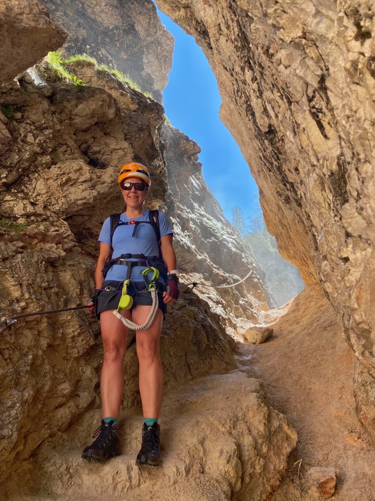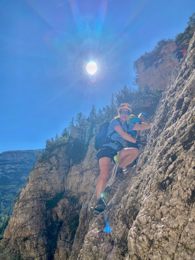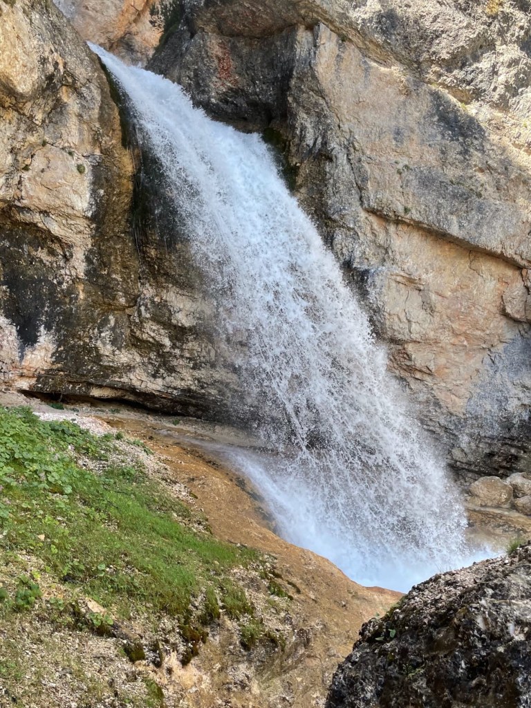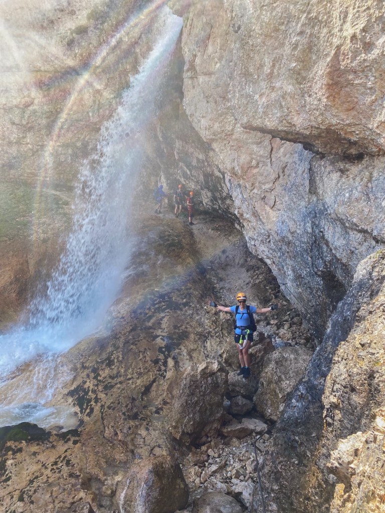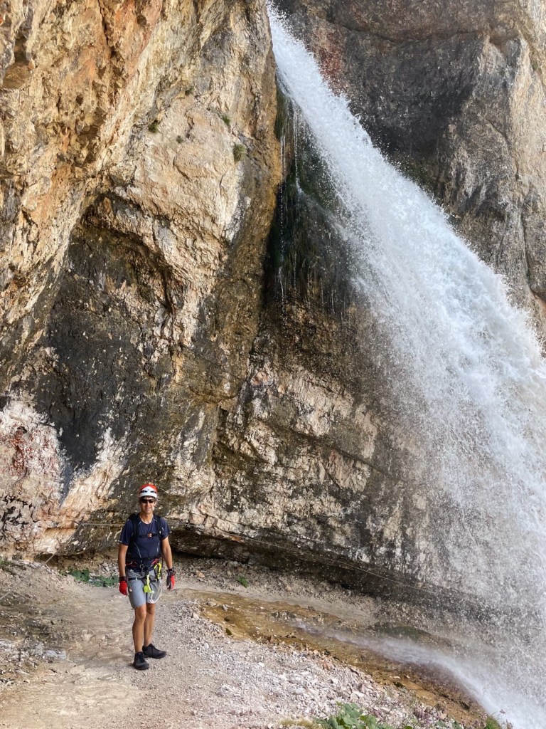 We’ve had a brilliant day doing 3 via ferratas, two of which went behind waterfalls. They were called Giovanni Barbara, Lucio Delaiti and Cengia di Mattia, and they were much less scary than the one we attempted in Austria, with plenty of foot and handholds.