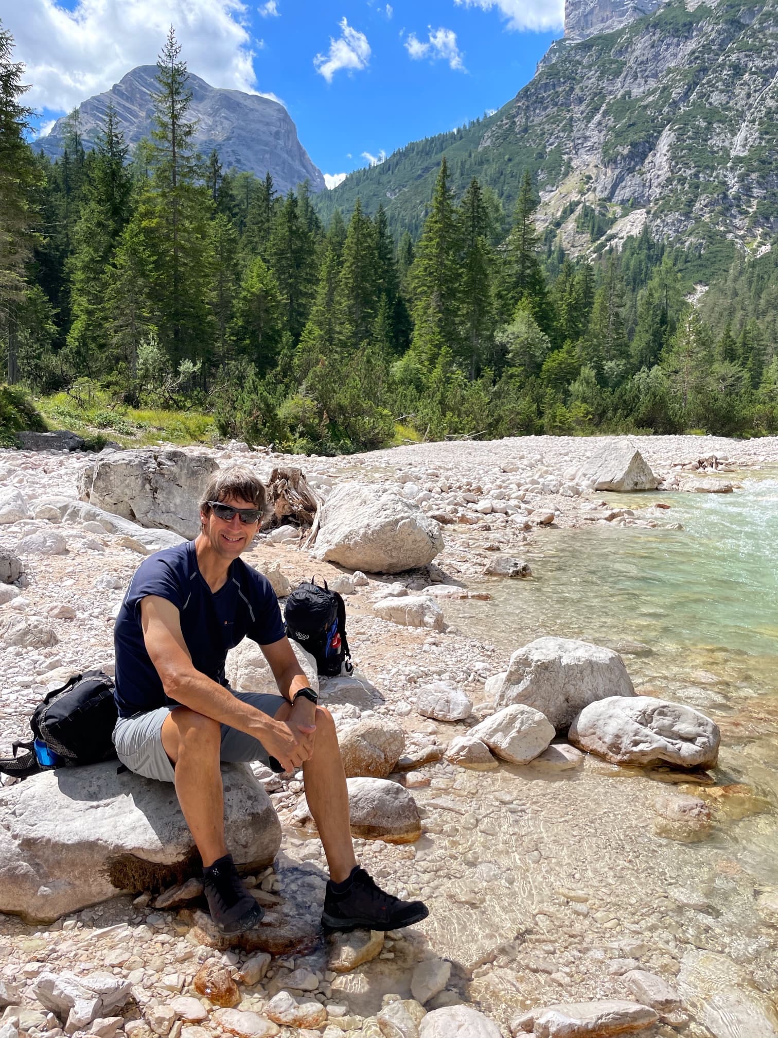 It was mainly back downhill now. It didn’t take long us to get back down so we took 15 minutes to cool our feet in the river before heading to the bus stop. This is where the day’s drama occurred!