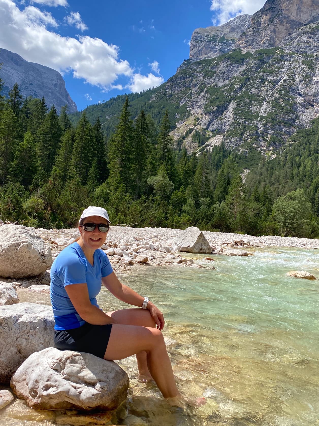 When we finished this, we continued our walk uphill to the third via ferrata. I found this quite difficult… the path was steep and rocky, and it was very hot. Finally we reached Ferrata Cengia do Mattia and, wow, it was worth the climb!
