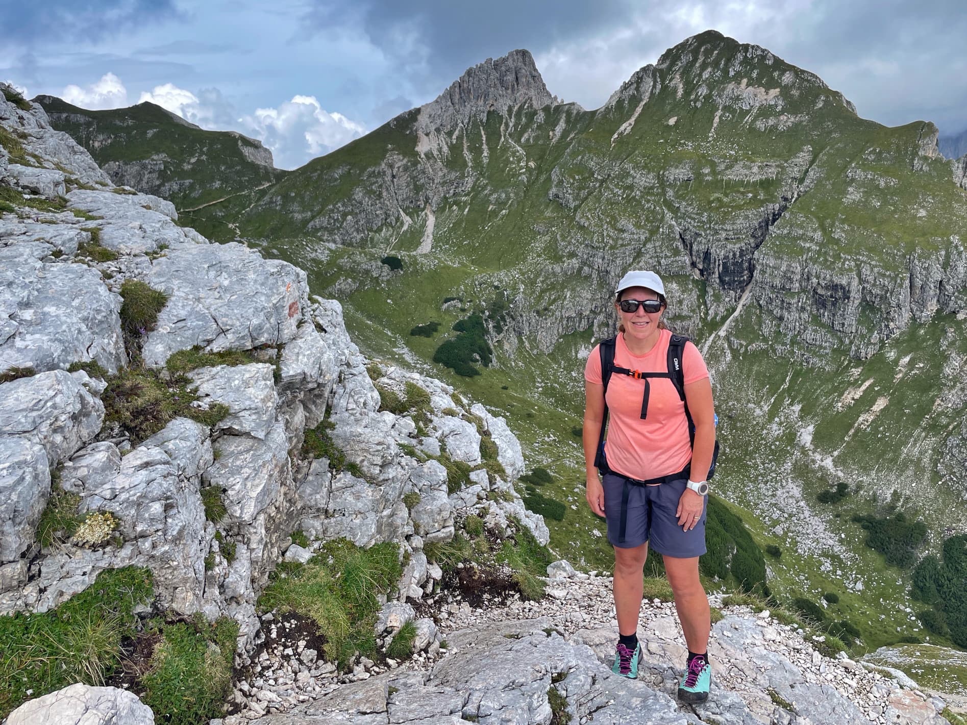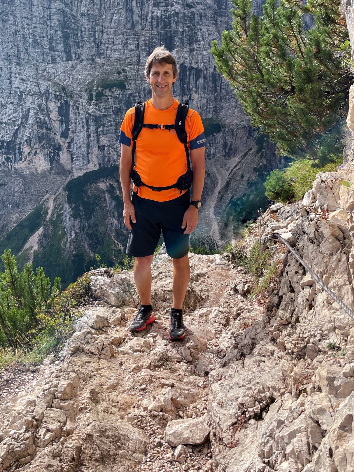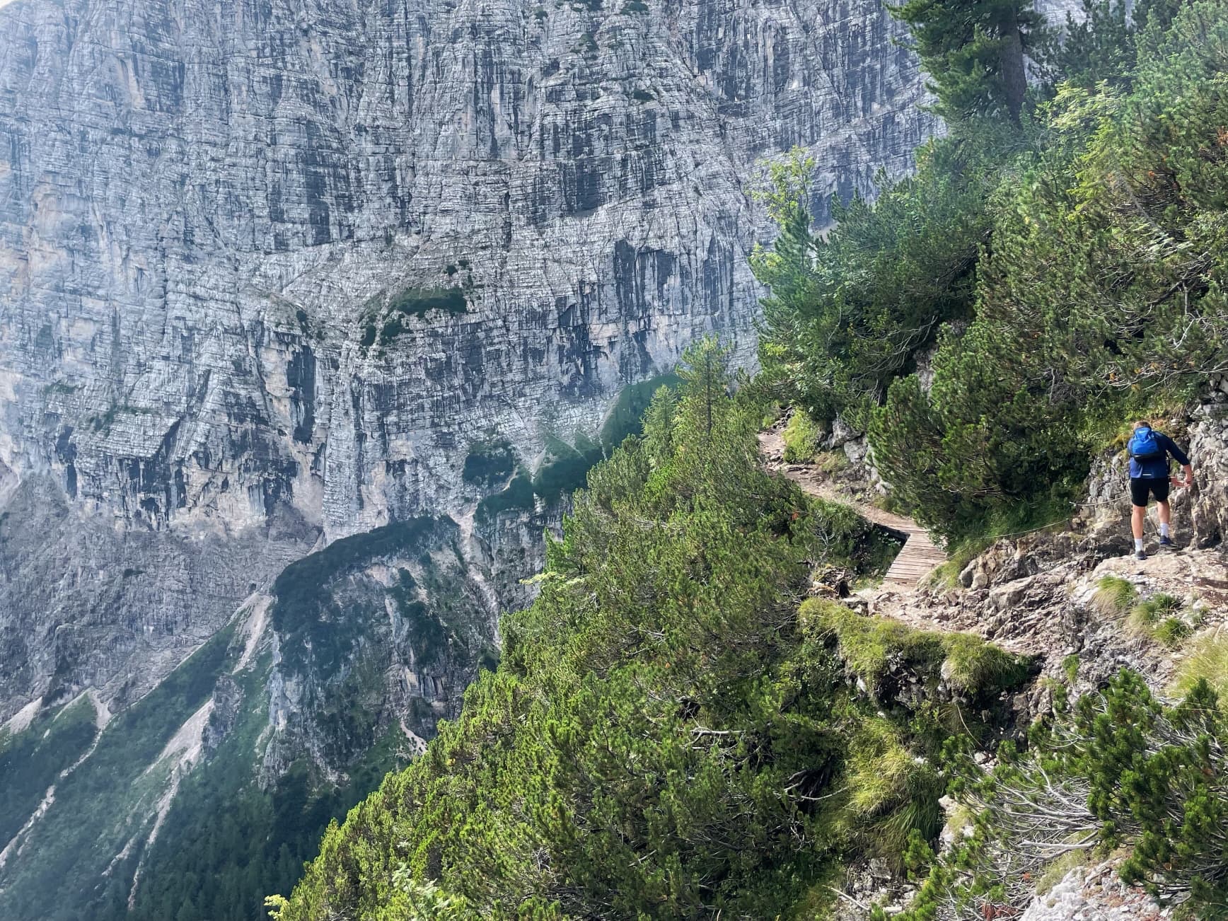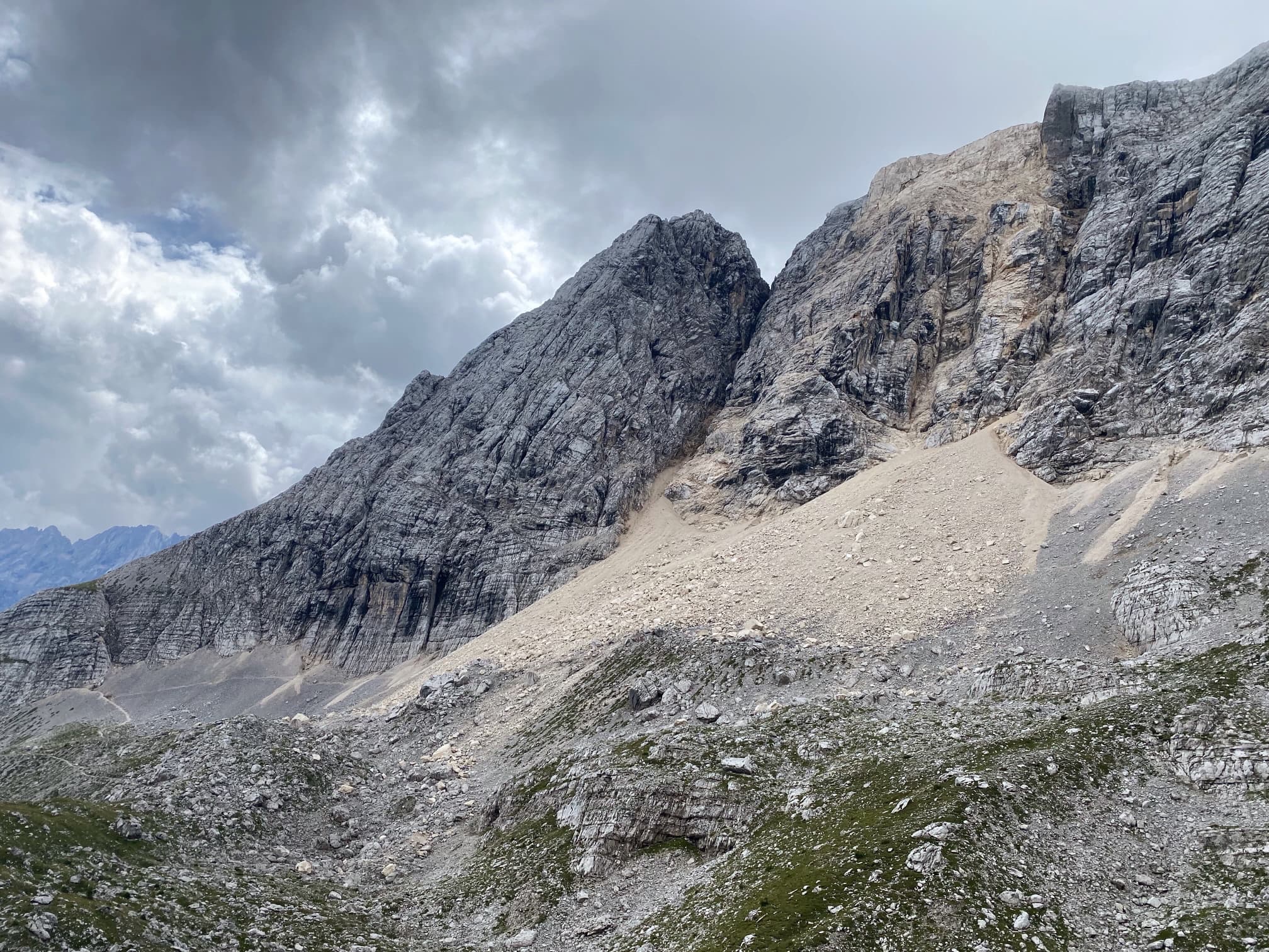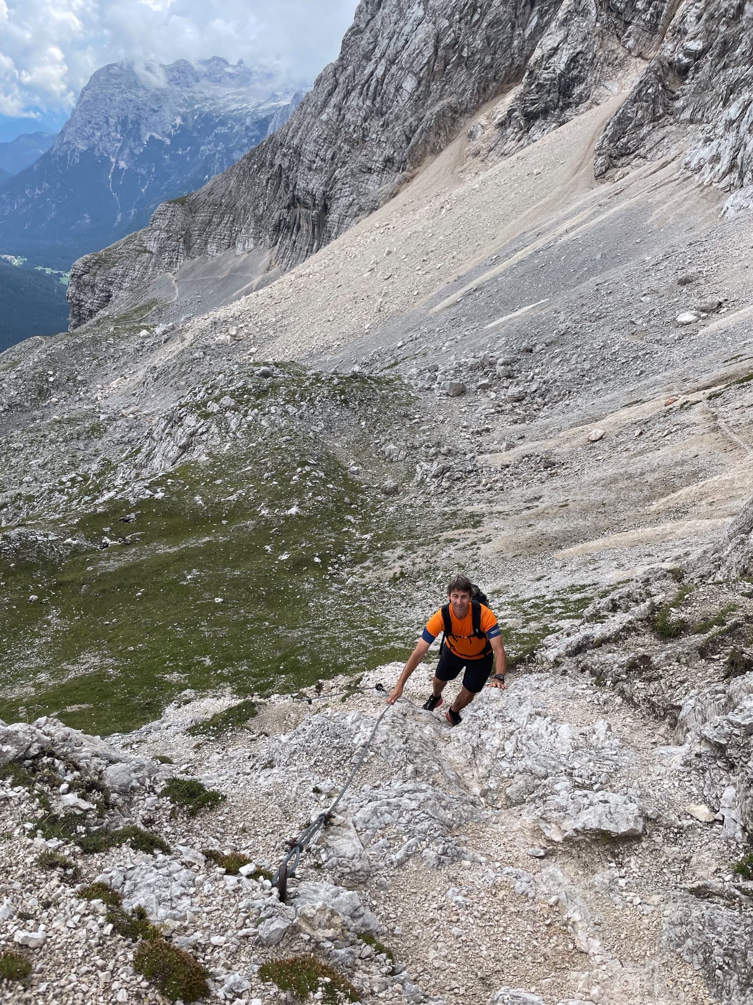 We then followed a ledge round the hillside, where the path was protected with a cable. Here we could see that there’d been a huge rock fall over the path we should have taken.