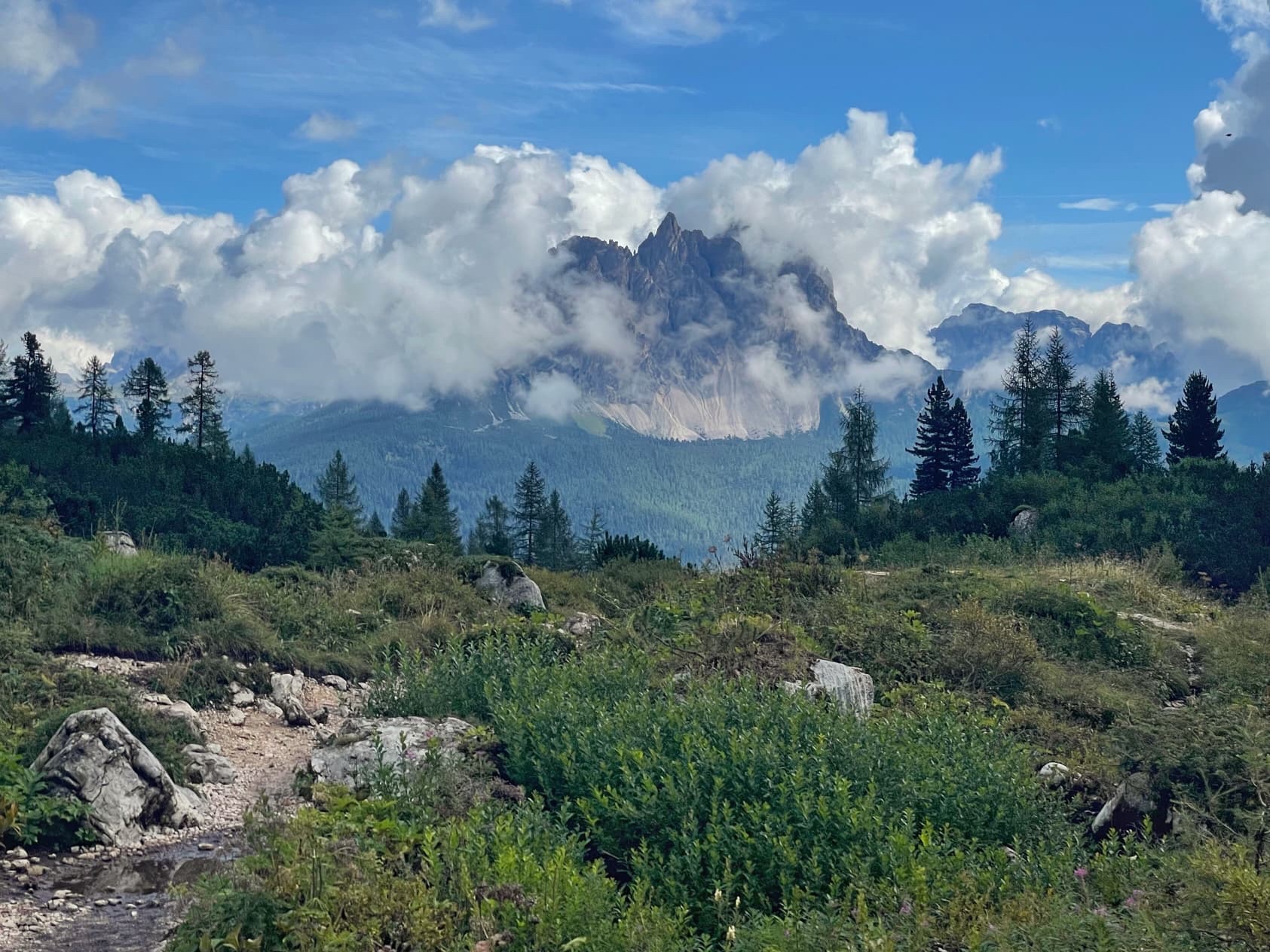 We had an early start, leaving the campsite at about 7.15 to make sure we got a parking space and beat the crowds. We’d prepared everything the night before and had breakfast when we’d parked up at Passo Tre Croci (1805 metres).