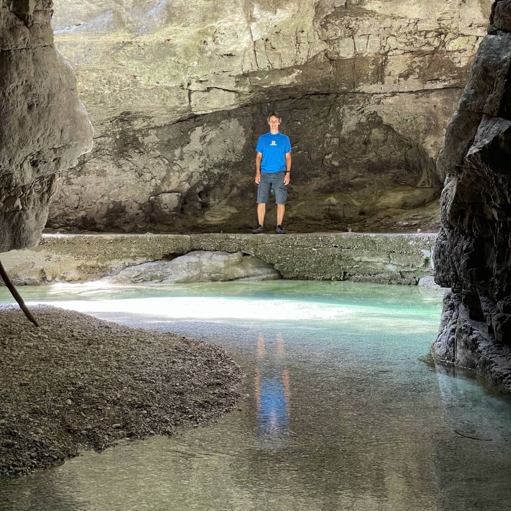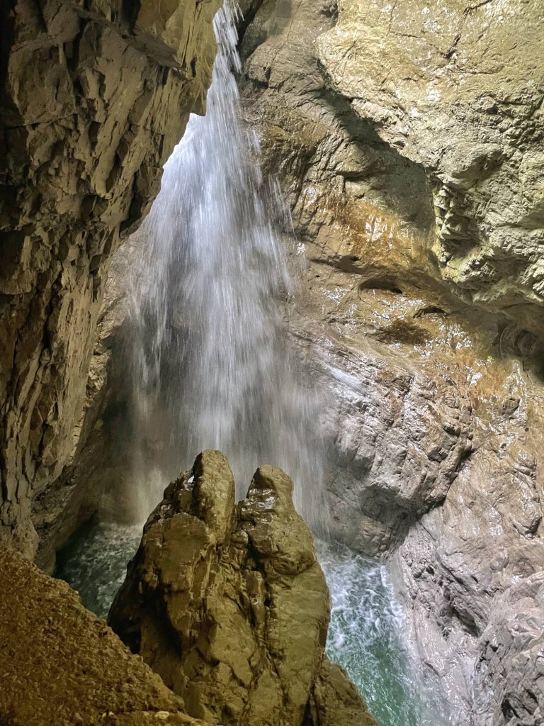 Today, we’ve been to see some waterfalls that Renato recommended. First we went to Cascata della Soffia. We weren’t overly impressed with these until we climbed down to the bottom of it, round some rocks and through a rock tunnel. This was fun, the water was a lovely blue, and the falls were much more impressive from here!
