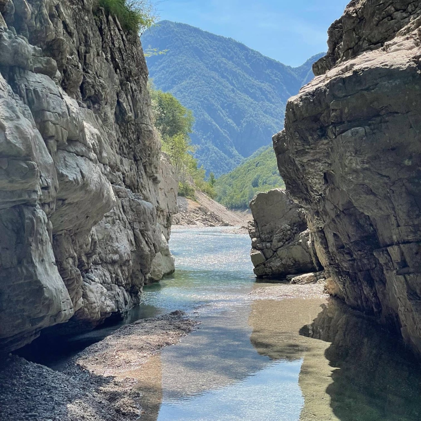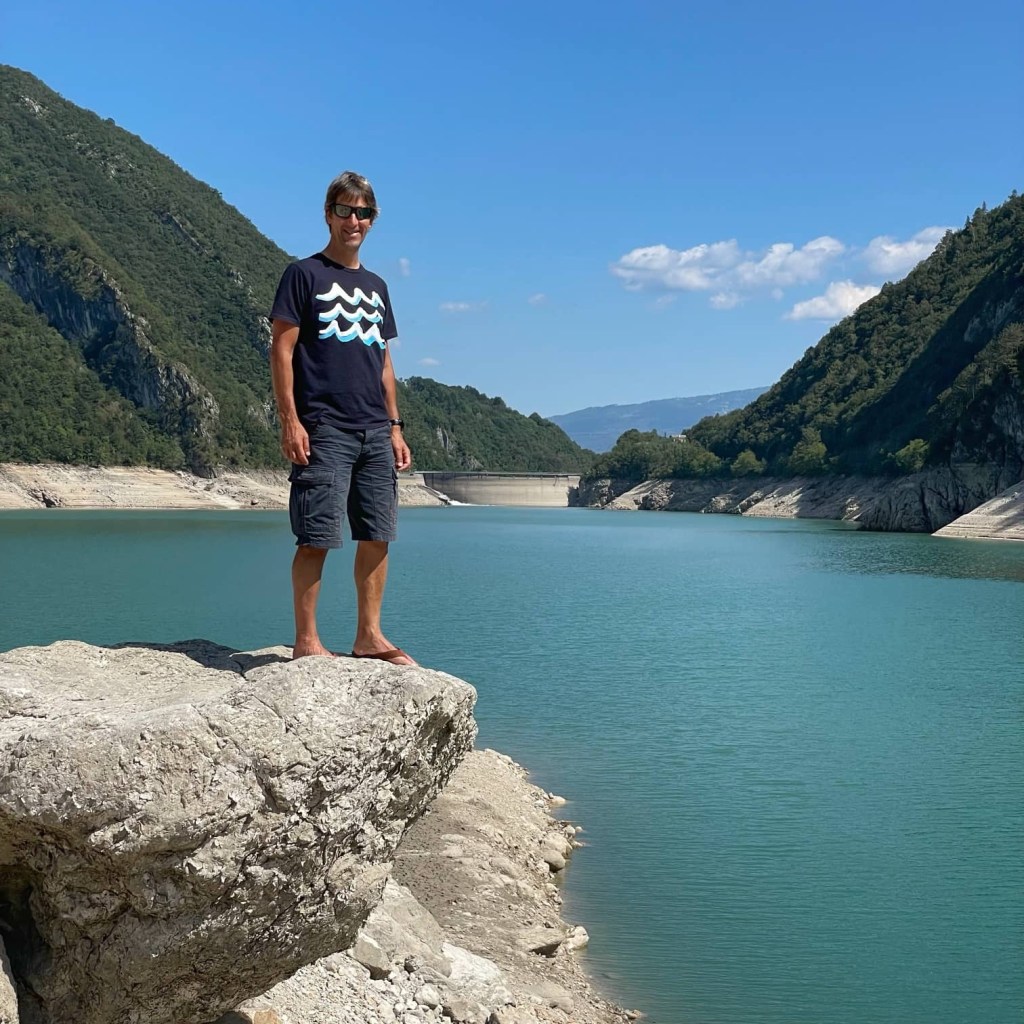 Anyway, we arrived safely, parked Bertie in a lovely shady spot, and had a wander to look at Lago del Mis. This is another beautiful blue lake, but extremely low, thanks to the dry winter and hot summer.