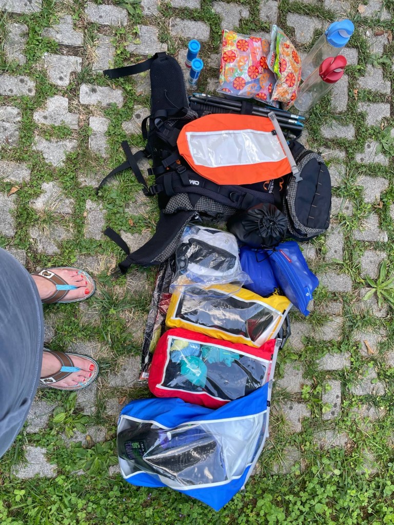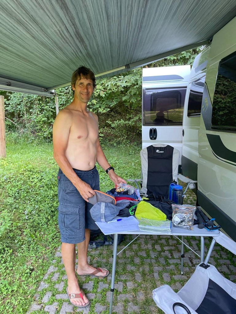 Back at the campsite, we’ve packed our rucksacks with everything we need for the trek. I’ve been struggling in the heat so John is kindly carrying some stuff for me. First thing tomorrow we’ll get Bertie ready to be left… emptying the bins, loo and fridge… before heading to Renato and Tiziana’s. Then we get a bus up the valley to start our trek, back over the mountains to collect Bertie again. Fingers crossed it all goes to plan!