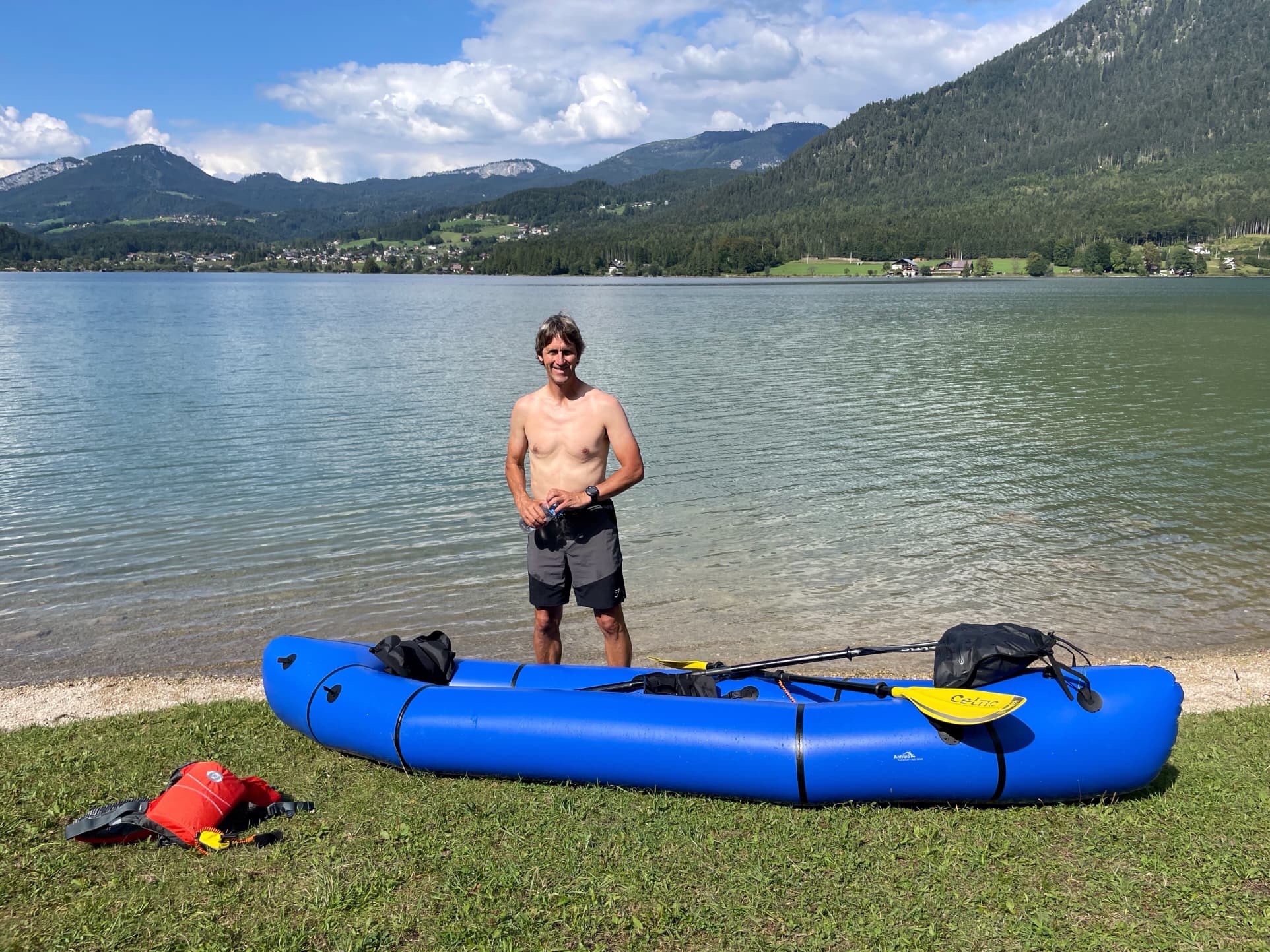 Yesterday we had a lovely day packrafting on Hallstātter See. I’d read that Hallstatt was a pretty place, with16th century alpine houses, so we thought we’d park up on the lake and paddle to see the town from the lake. I did fancy visiting the salt mines there too, but we didn’t get around to that.