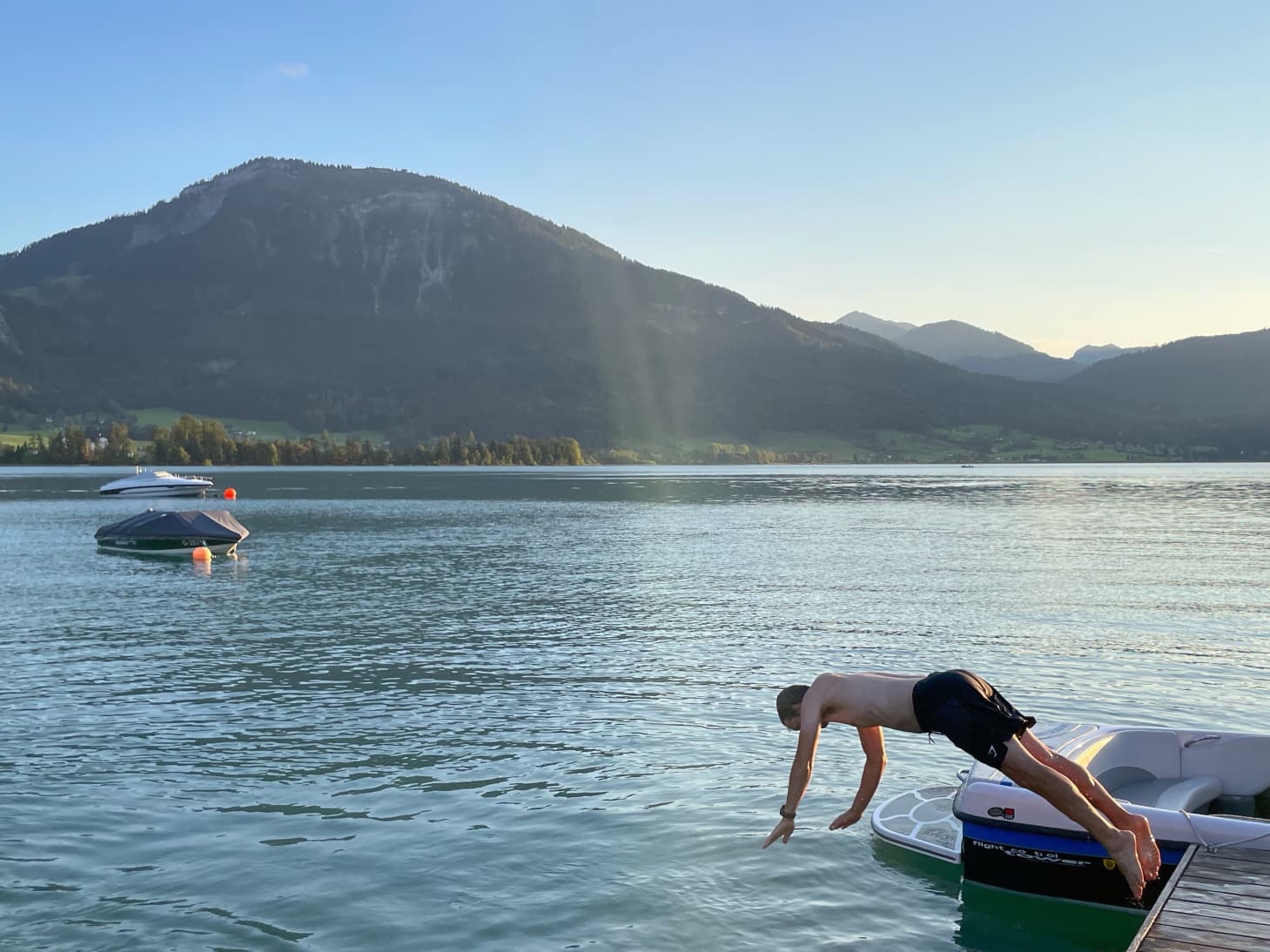 Back at the campsite, we had dinner early because we fancied a sunset swim. The sunset wasn’t amazingly beautiful, but Wolfgangsee was lovely and warm once I got over the initial shock of the water. What a lovely, relaxing day. We’re hoping for another similar one today as it’s our last day before we head home.