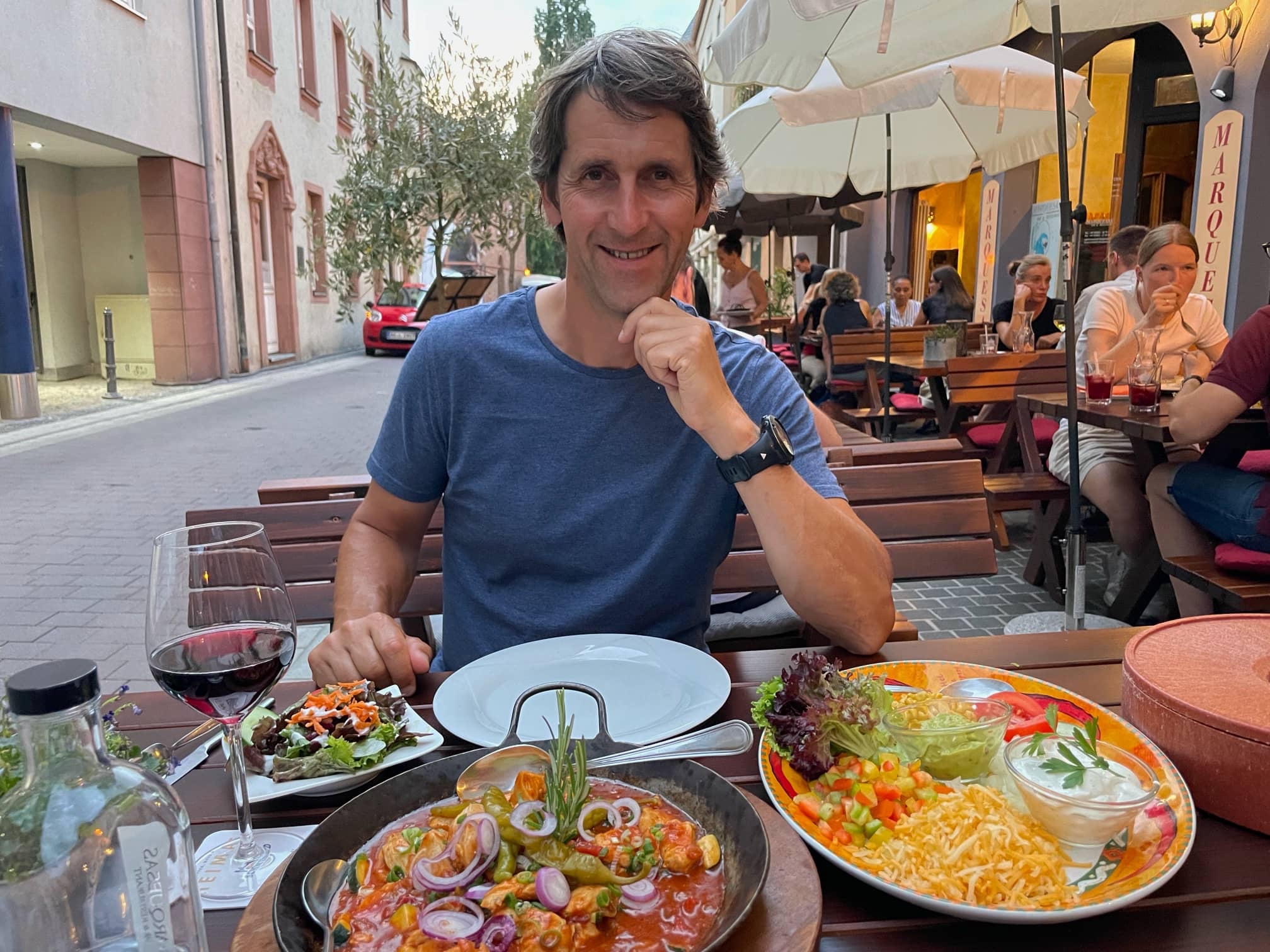 By now we were ready for dinner. The old town was bustling. There must be a festival taking place over the weekend because stages and stalls were being erected. Many of the bars and restaurants were full but we walked a bit further and found a somewhere doing Spanish and Mexican meals… a welcome change from German and Italian food!