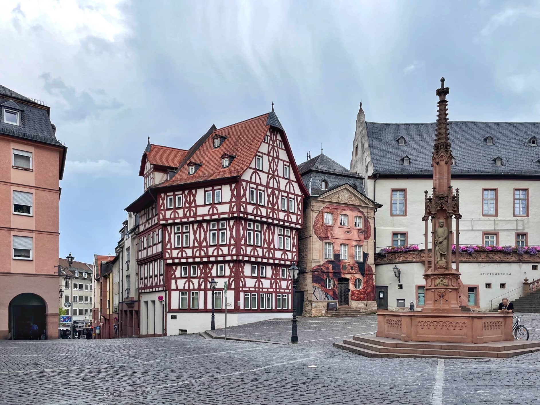 We then wandered over a bridge over the River Main into the town, with huge barges passing below. Aschaffenburg has a charming historical centre with narrow streets and old buildings, which I was looking forward to exploring.