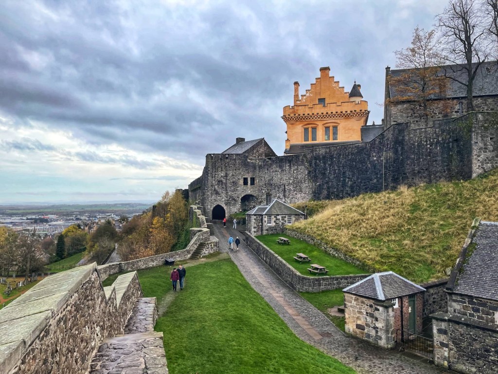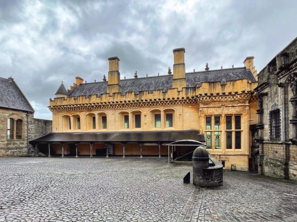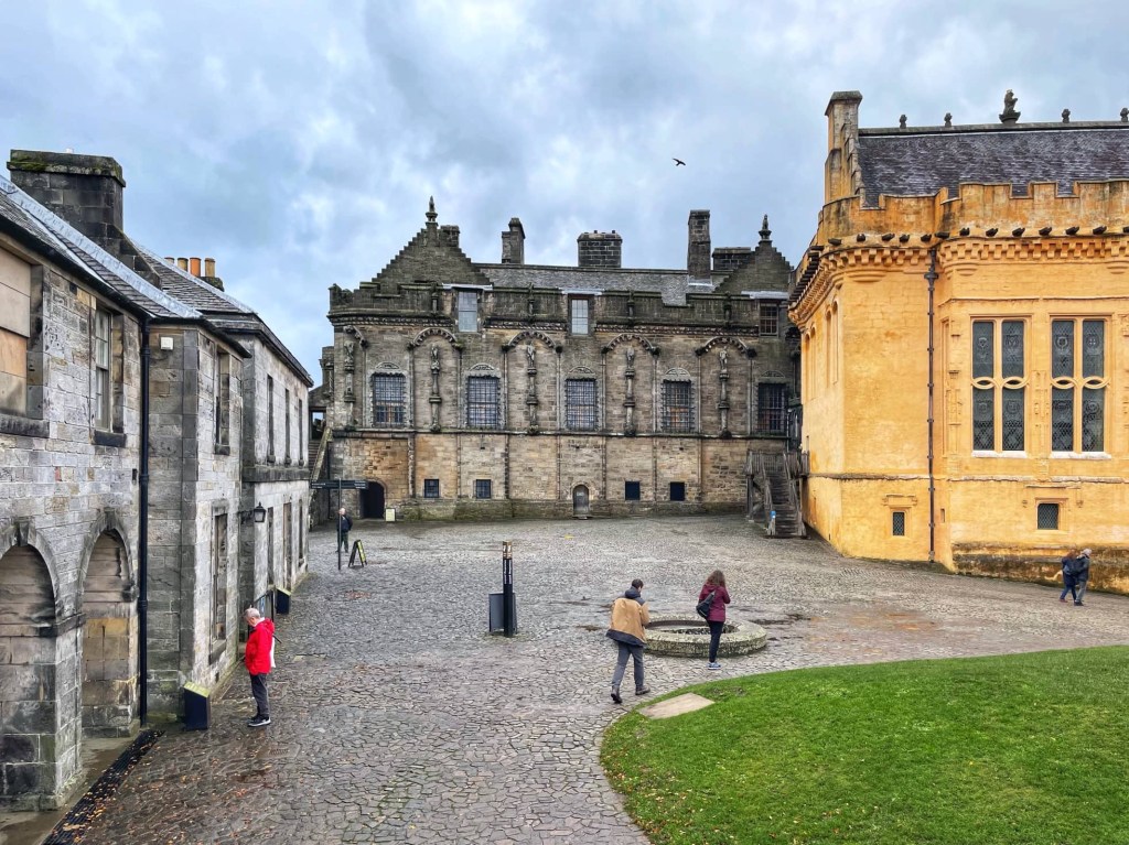 Our final visit of the day was to Stirling Castle, perched on a rocky crag high above the plains where many Scottish battles have been fought. The present castle dates from the 15th and 16th centuries.