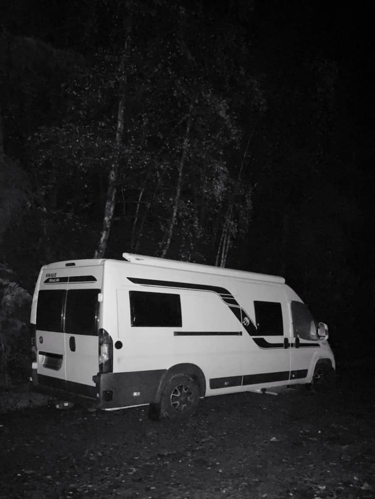 After all the rain yesterday, we were pleased to wake up to sunshine. We had breakfast and sorted Bertie, emptying bins and the toilet and filling the water, ready for a few nights off grid.