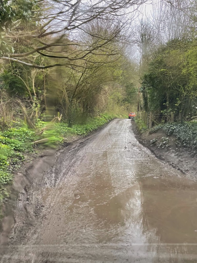 The adventure continued as we headed along single track country lanes, up hill, through mud and puddles. It wasnāt the best route for a heavily laden campervan with a bike rack on the back!