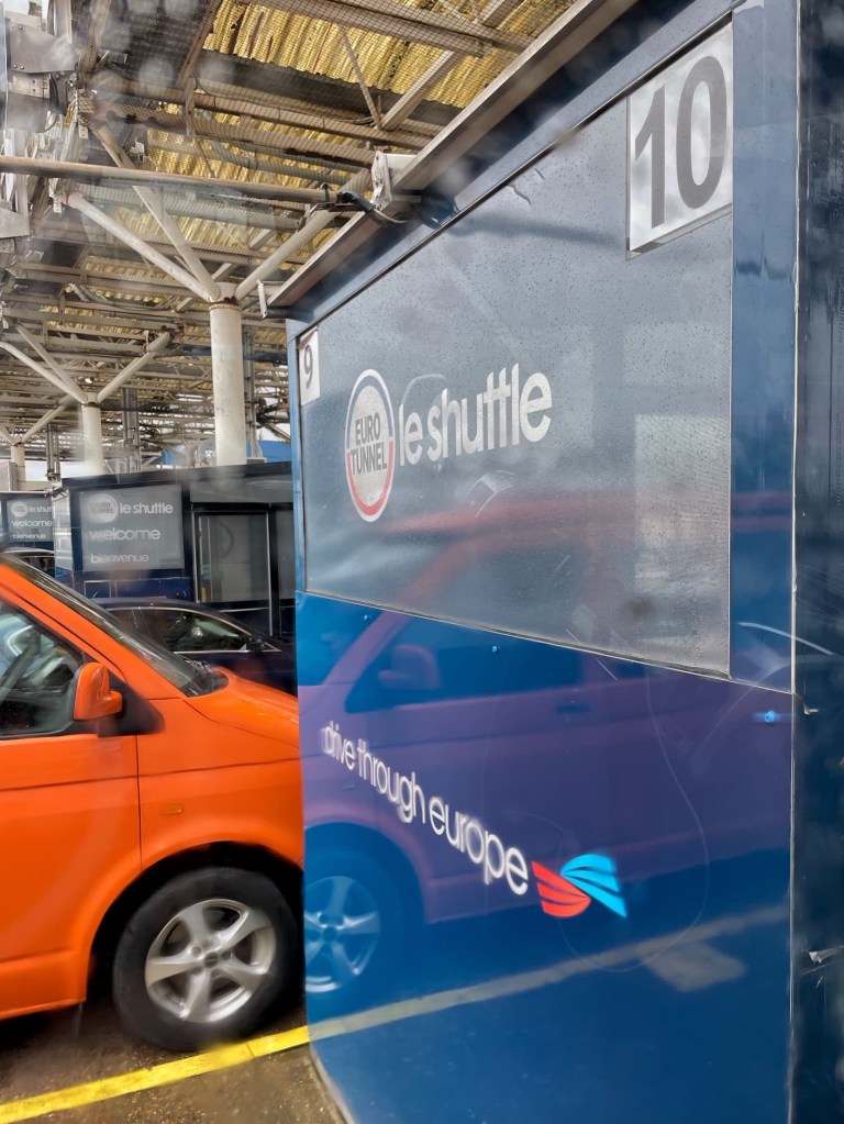 As we were travelling, news reports warned of traffic jams and delays at Dover. Then, as we approached Folkestone, Google Maps suggested we took a diversion to avoid the congestion. I was engrossed in knitting my first pair of socks and John ended up taking the wrong turning and heading towards the Channel Tunnel check in!