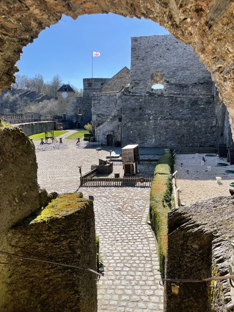 We then climbed up to Bouillon Castle, a medieval fortress where we enjoyed wandering through the rooms and along the ramparts. We also watched a falconry display.