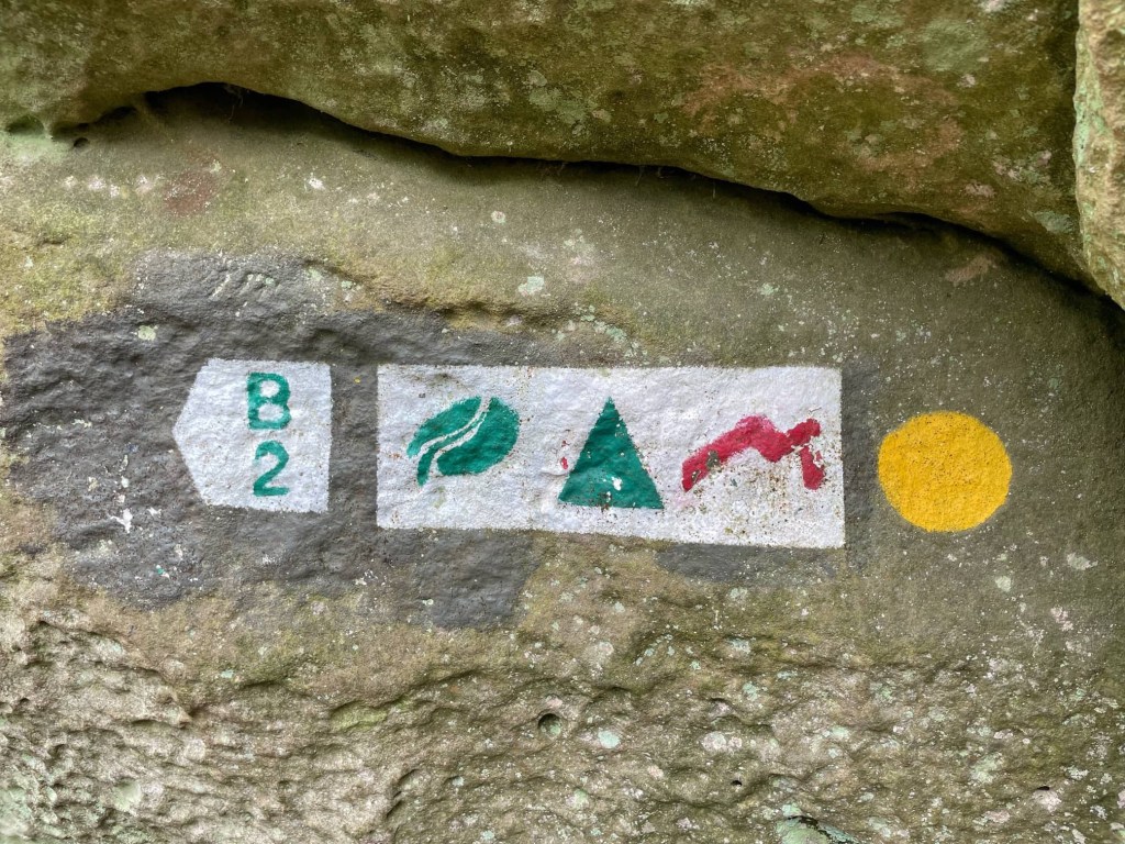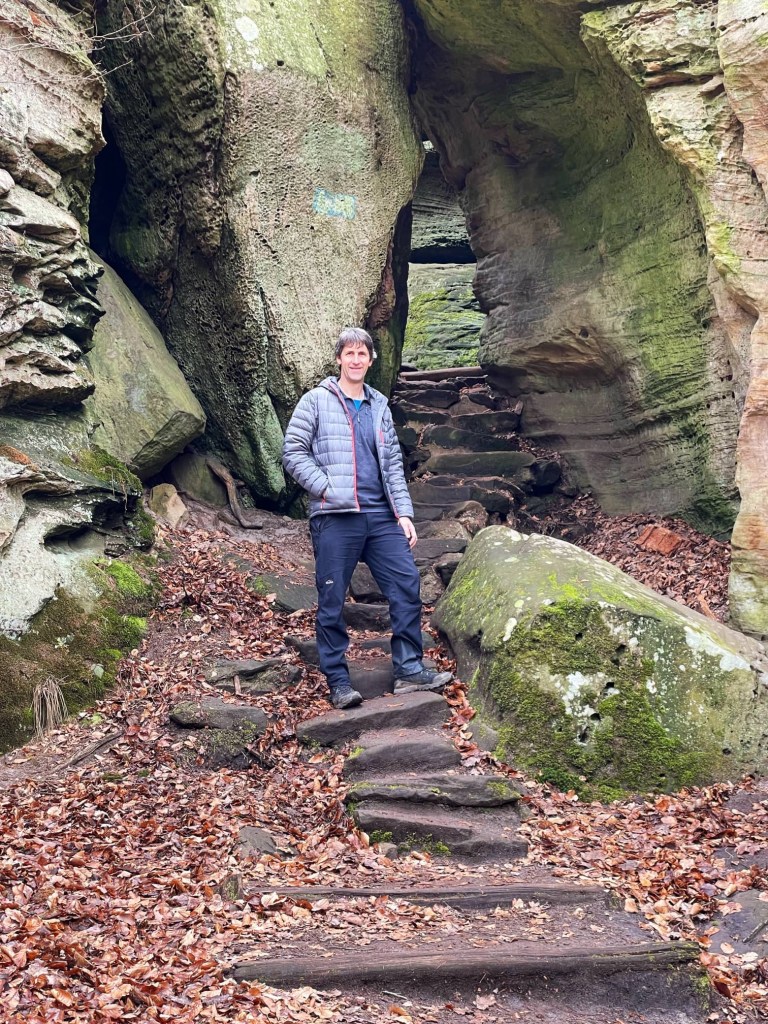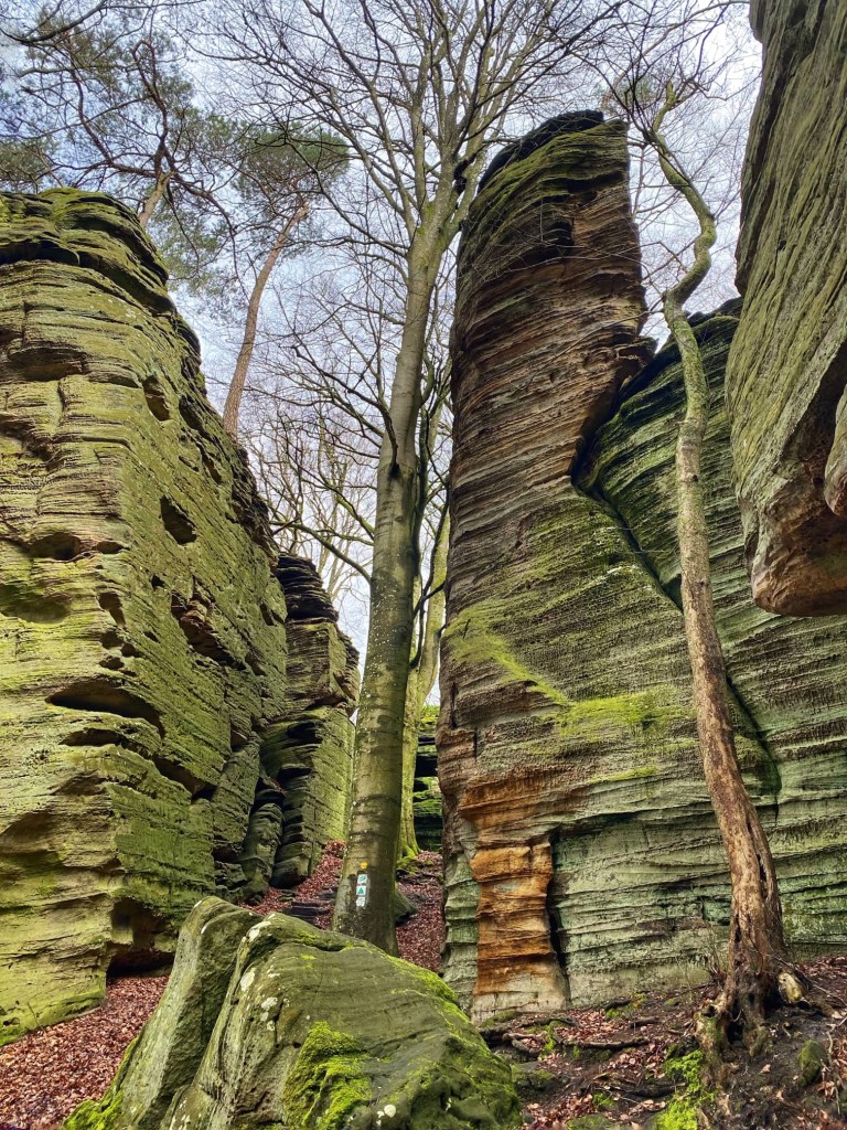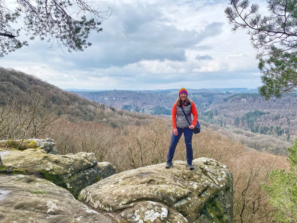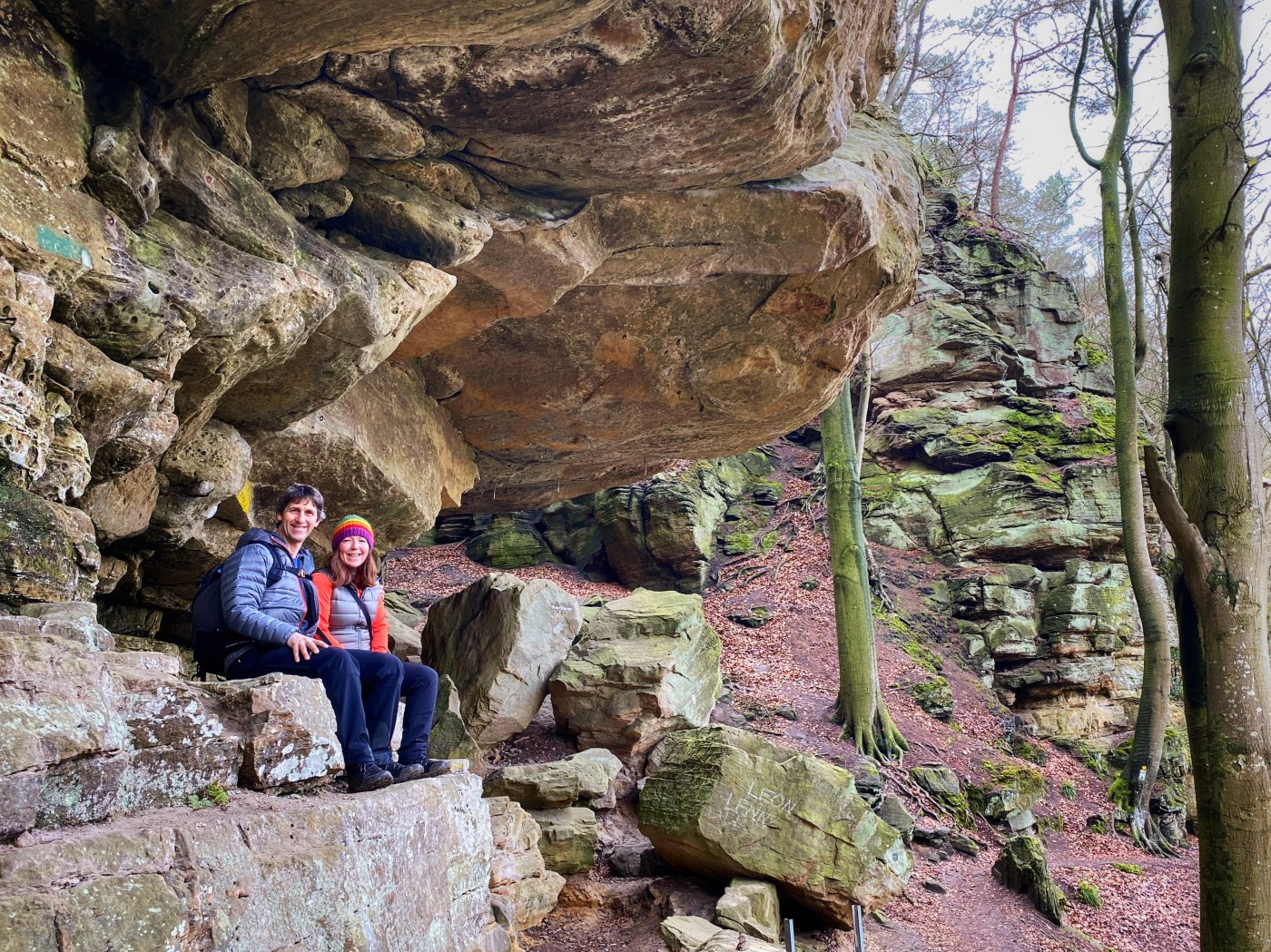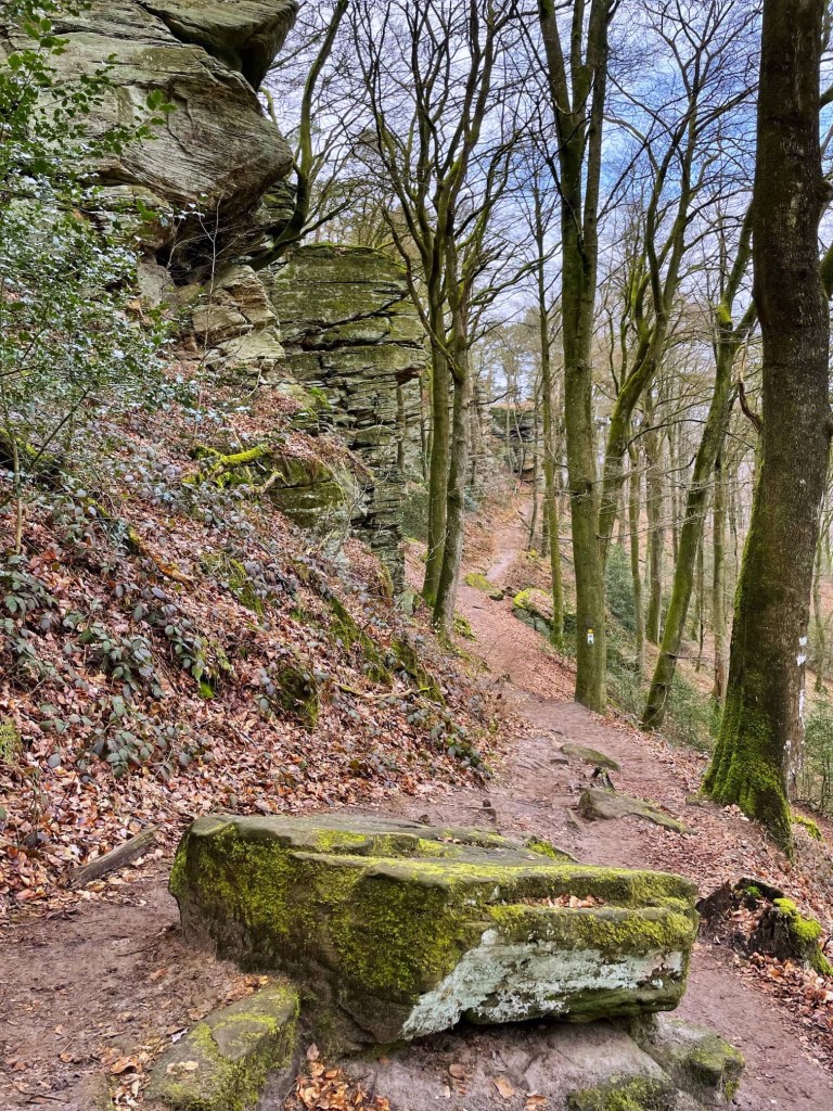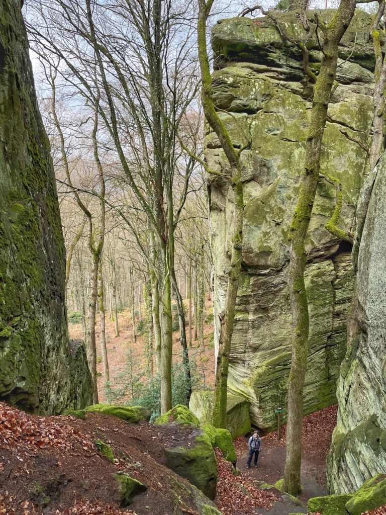 We’ve had a fabulous walk from the campsite today, exploring a trail leading through and around amazing rock formations in beautiful woods. It was only meant to be 4 kilometres long but ended being 6 or 7 with all the exploring we did, then 9 with a detour for something to eat in Berdorf.