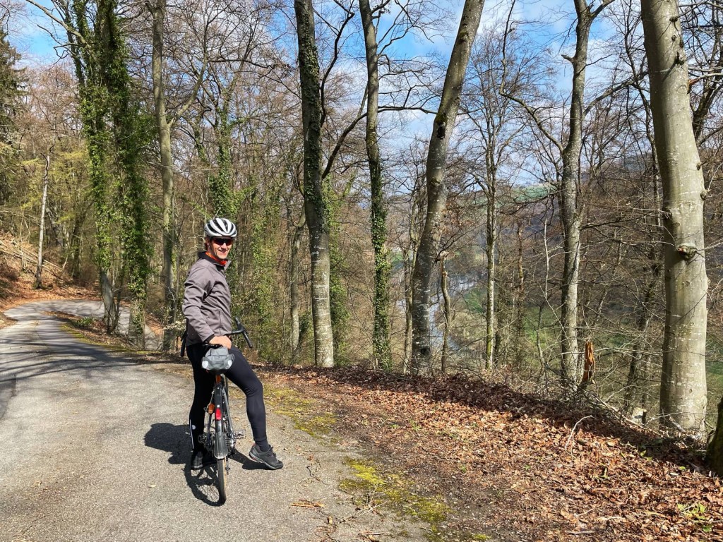 We started on top of a relatively high plateau at Berdorf, which meant we were going to finish with a big climb! The route was lovely and varied, passing through wooded valleys and open green fields, dotted with sleepy villages. We had hoped to stopped for coffee but, at this time of year, cafés seemed non existent!