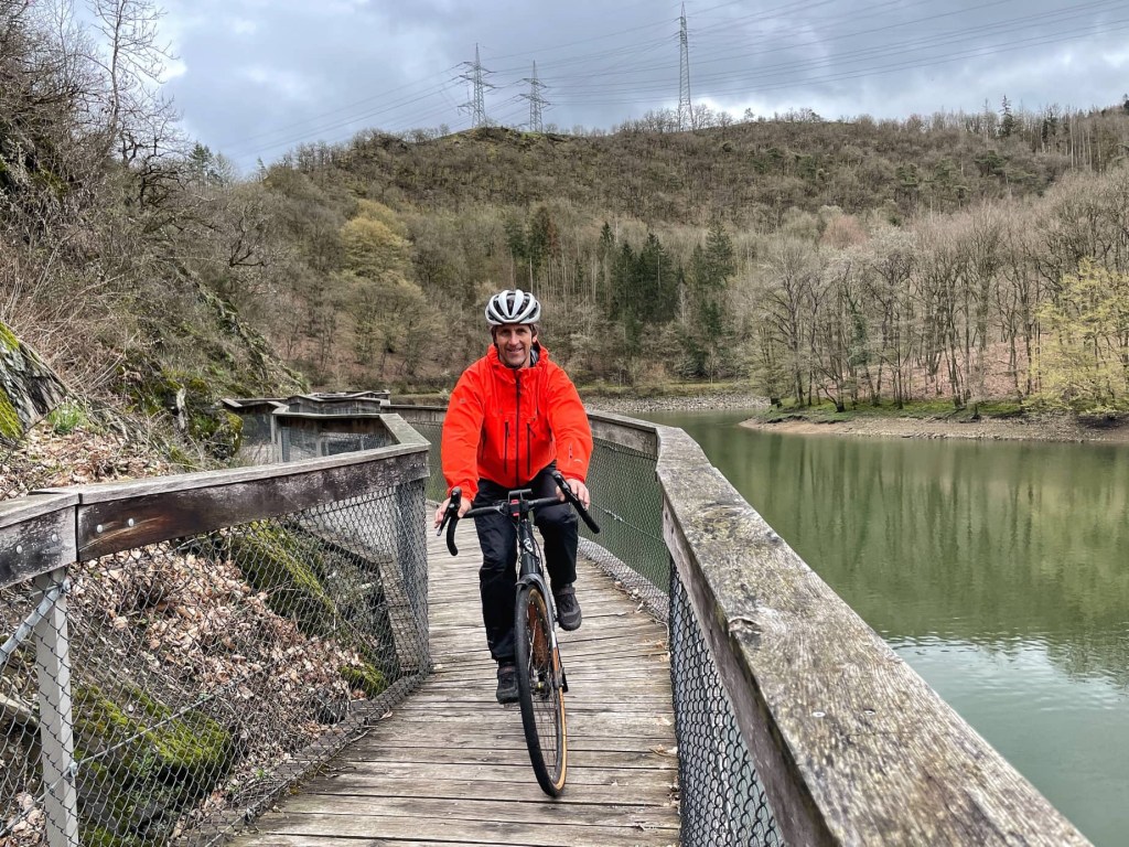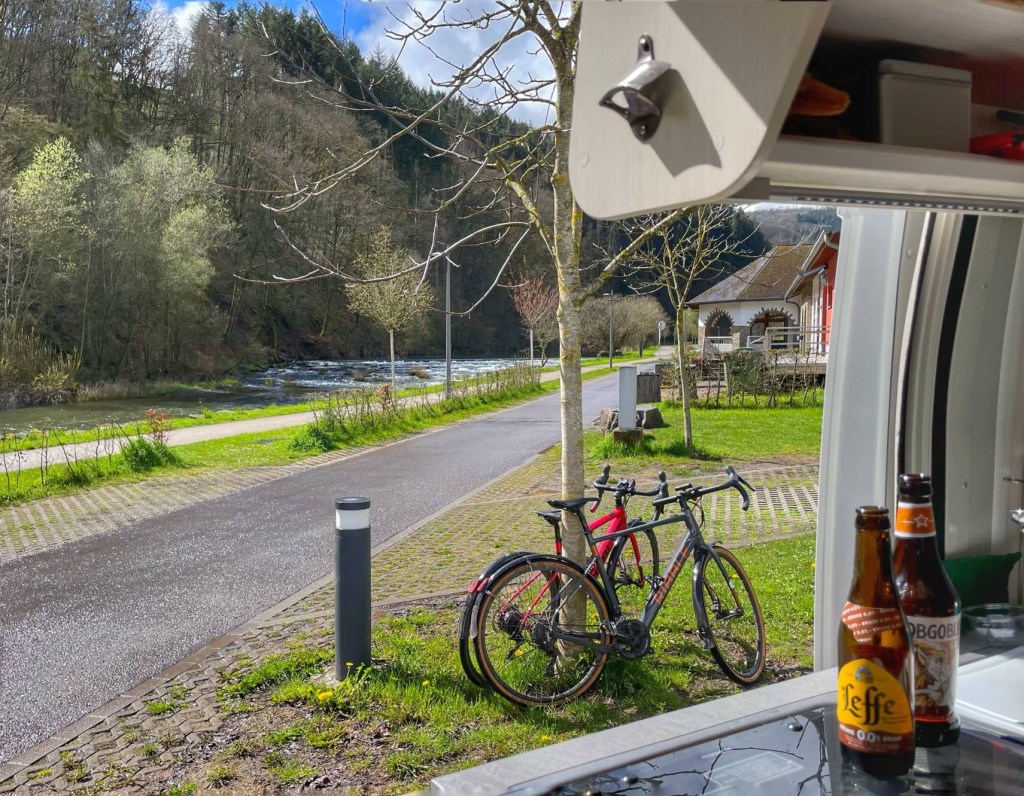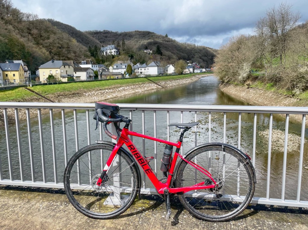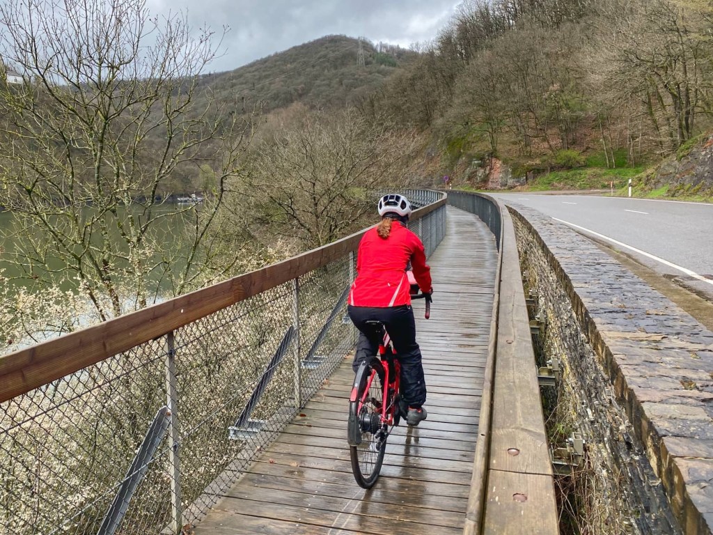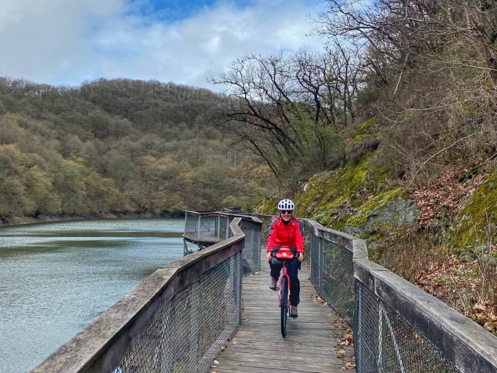 Back at the van, we deliberated whether to stay in Bertie and read and watch DVDs or brave the rain for a bike ride. By the time we’d had breakfast, the weather had improved, with the sun peeping out between rain showers. We decided to have an easy bike ride along the River Our valley to Stolzembourg.