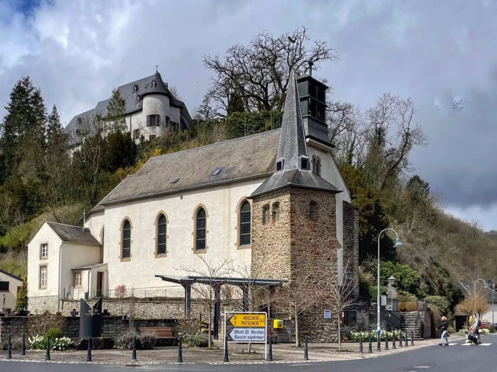 Shortly after passing a pumped storage power station, we crossed the river into Germany, later crossing back into Stolzembourg in Luxembourg. The old border crossing here made history because it was the first place where Allied Forces stepped on German soil after D-Day. There’s a castle in Stolzembourg. The most recent one is the third built on the site (1898).