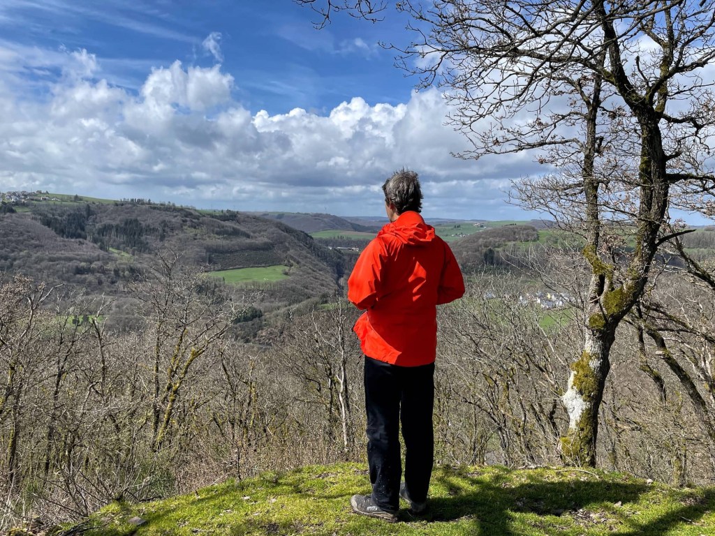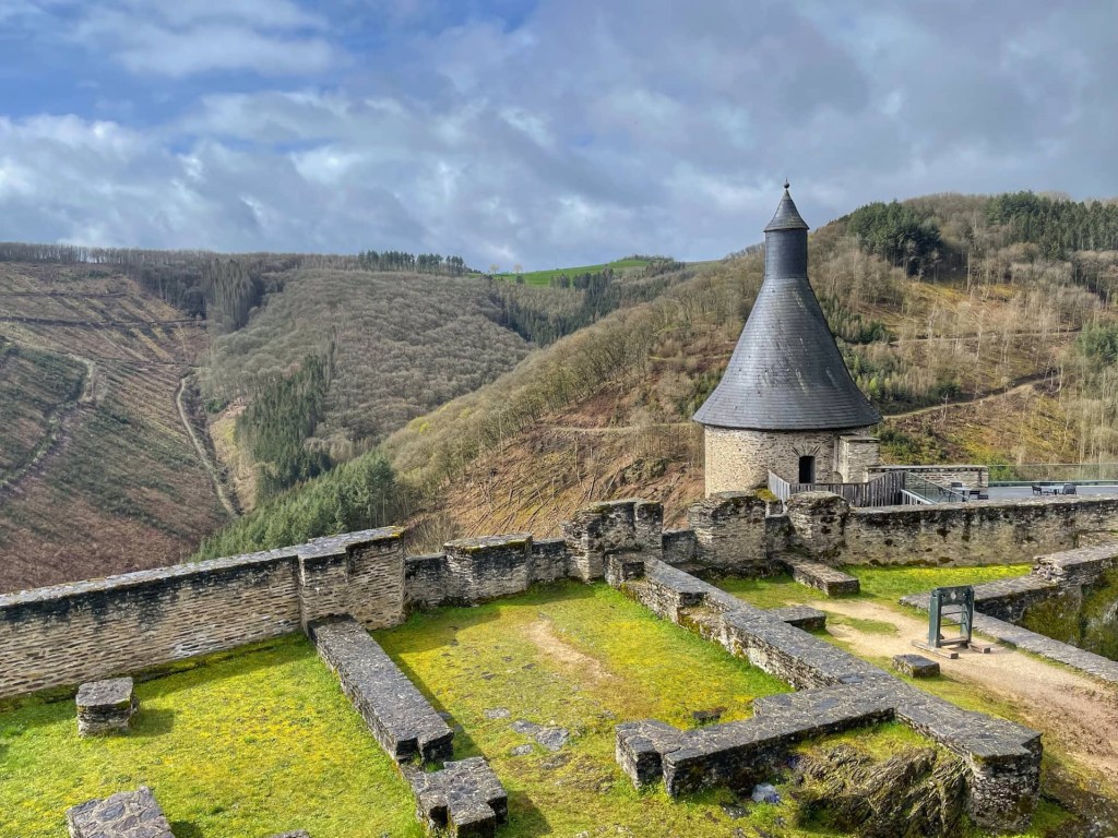 The view at the top, over a meander in the River Sûre and towards the castle was worth the effort though. The weather improved too, and the sun came out more and more often as we walked along a ridge before dropping back down to the valley, and up again to where we’d parked at the castle.