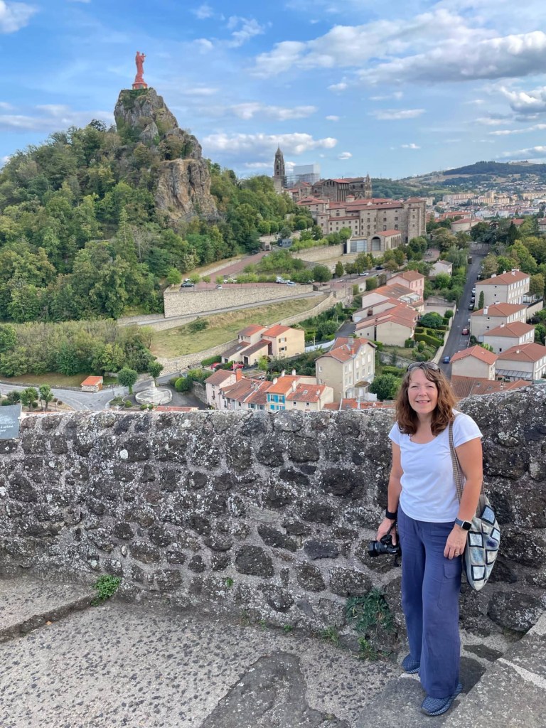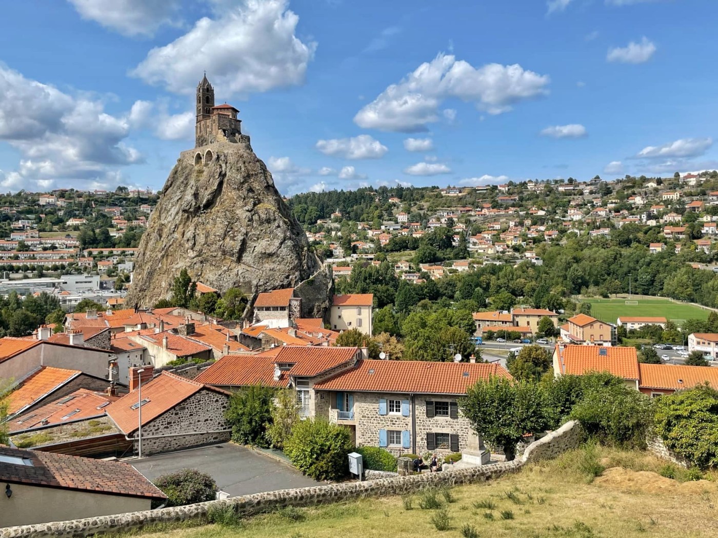 As we drove into Le Puy-en-Velay where we’re staying for a couple of days, we were stunned to see Rocher Saint-Michel d’Aiguilhe, a chapel perched on a rock. I’d seen photos, but was surprised just how tall and pointy the rock is. It’s stunning and amazing to think how it was constructed centuries ago. Tonight we’re staying at the aire below the rock, before moving to a campsite tomorrow.