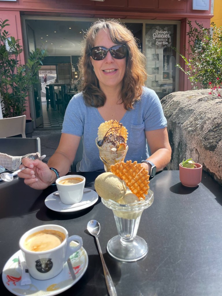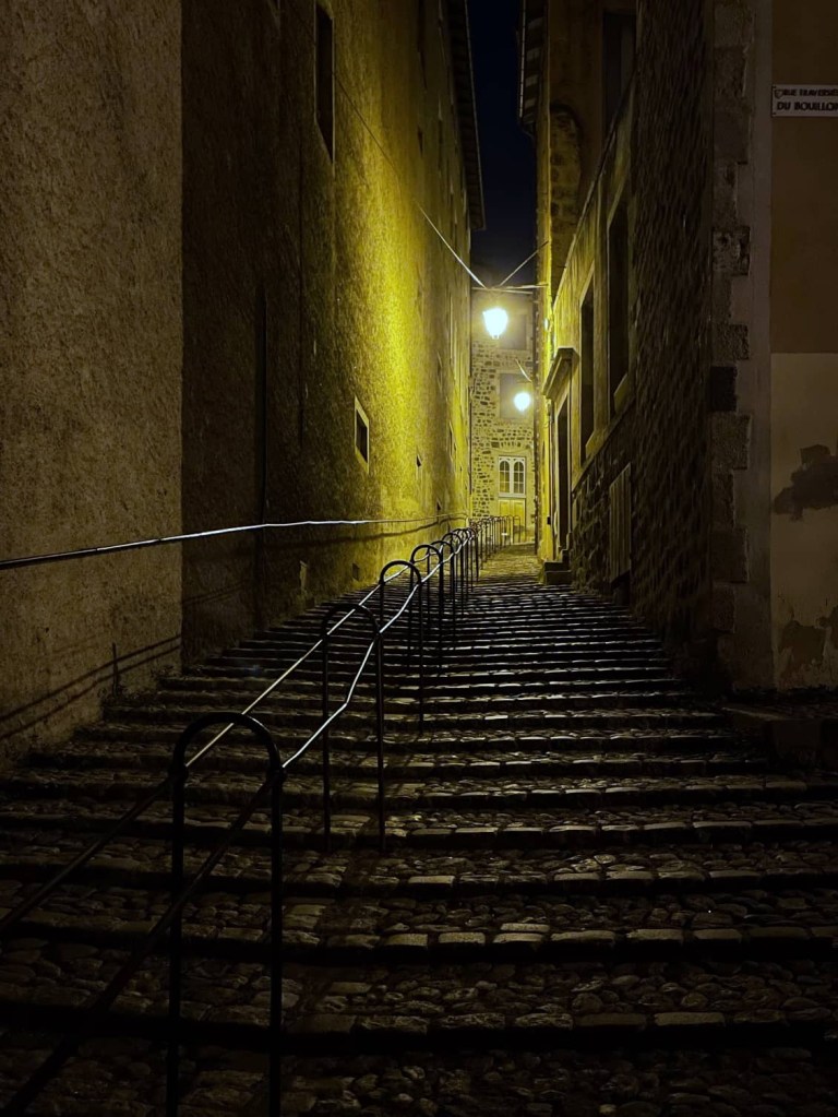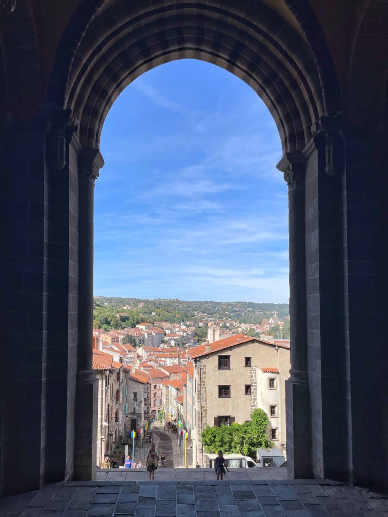 Next we entered Le Puy Cathedral. This is on top of the basilic rock that Le Puy was built on, which has been inhabited since Roman times. It’s also one of the starting points for the Camino Santiago de Compostela. Before moving on we stopped for coffee and an ice cream. I’ve got a sore throat and this was just what the pharmacist (me ðŸ¤) ordered!