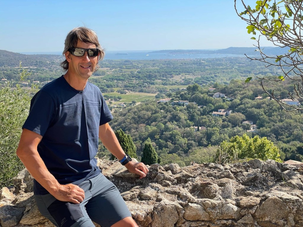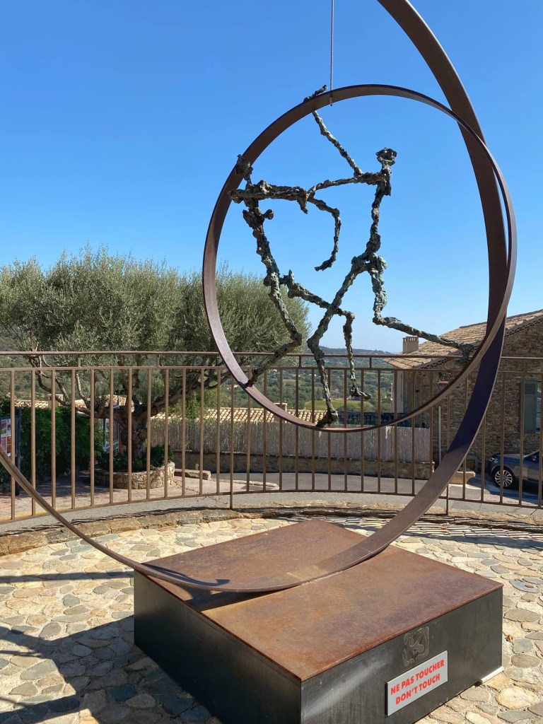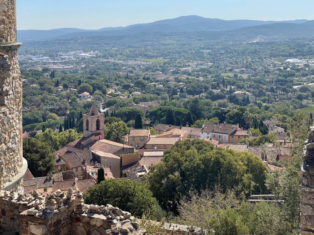 After yesterday’s strenuous and sometimes scary hike, it’s been good to have an easier day today. We cycled from Port Grimaud on the coast, to Grimaud, a medieval, fortified village that tumbles down the hillside.