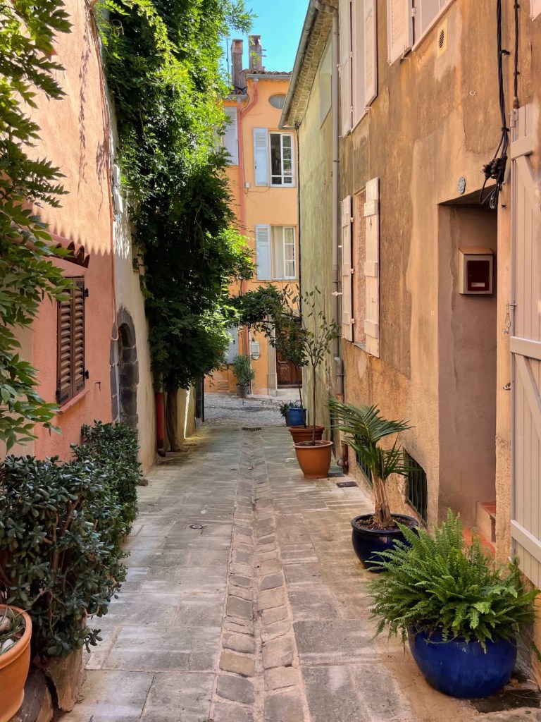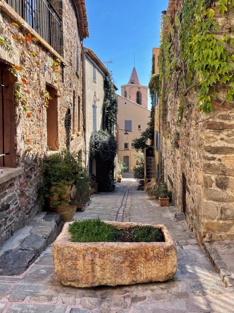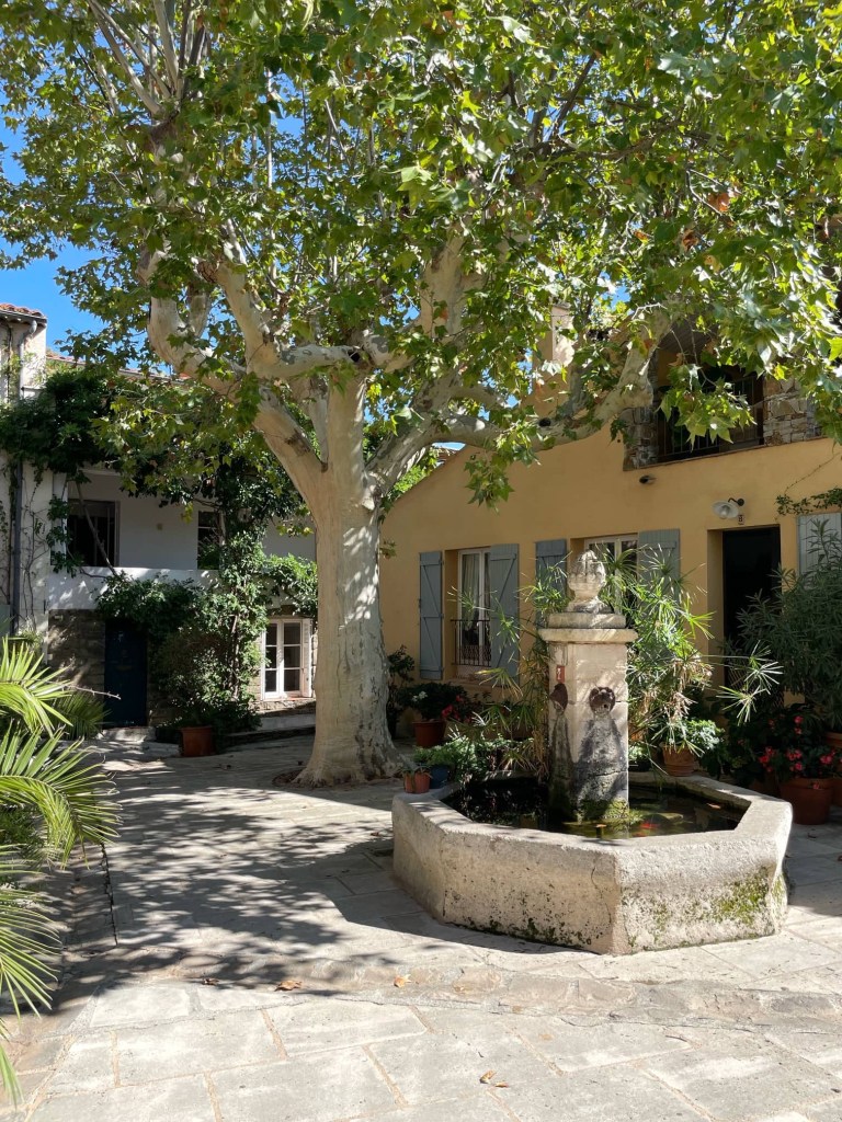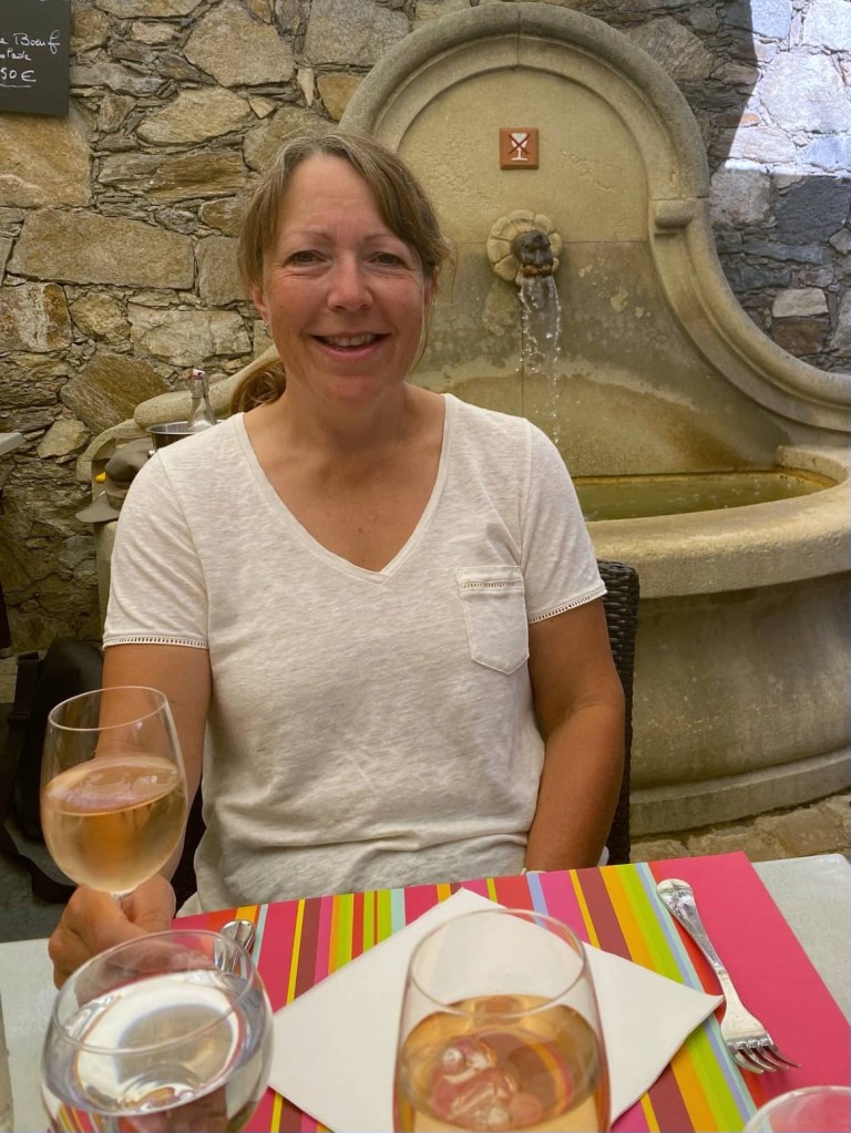 After exploring for an hour or two, we found a restaurant in one of the village squares and stopped for lunch. It was lovely sitting in the shade by a babbling fountain eating fish washed down with rosé 😊