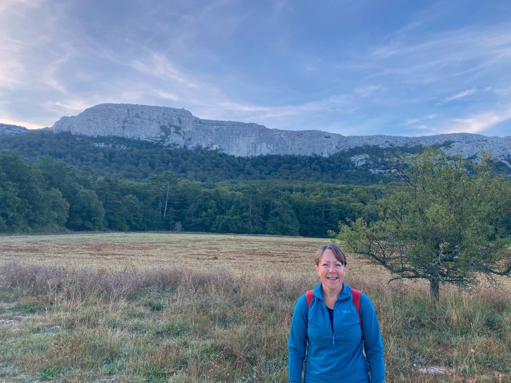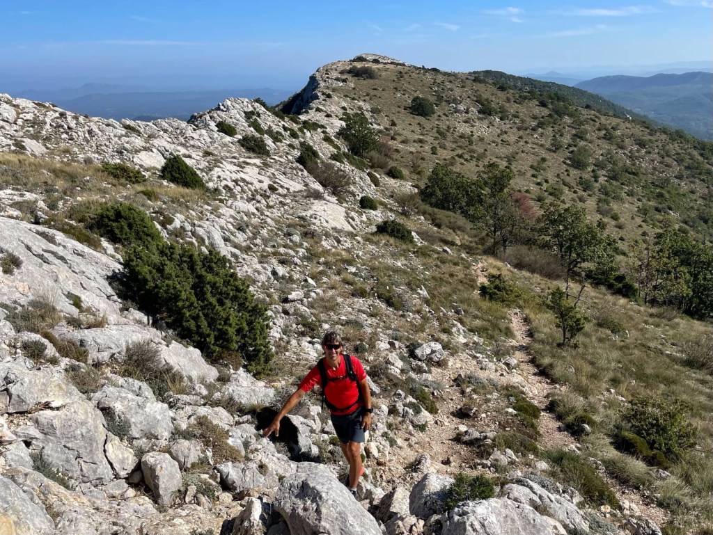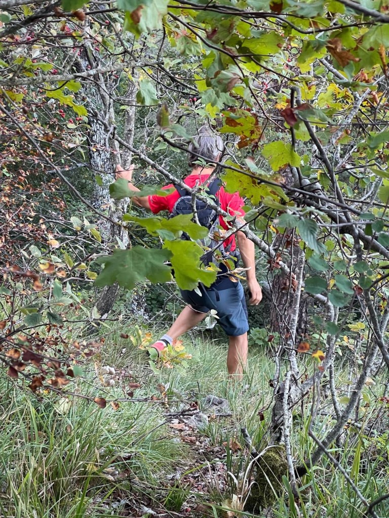 The forest reminded me of home because it was quite damp and had large oak and beech trees. When we got to it, the other side of the ridge was drier and scrubbier and felt more typically Provençal. As we started climbing more steeply at the end of the forest track, we took a path that petered out and we ended up bushwhacking our way back to the path we should have taken. Those who know me well won’t be surprised to hear I ended up in tears after slipping on my bum, and being whipped by branches, despite the fact I wasn’t hurt! I blame the adrenaline racing through my veins! 😳😆