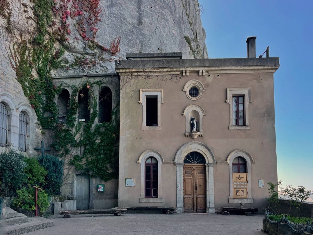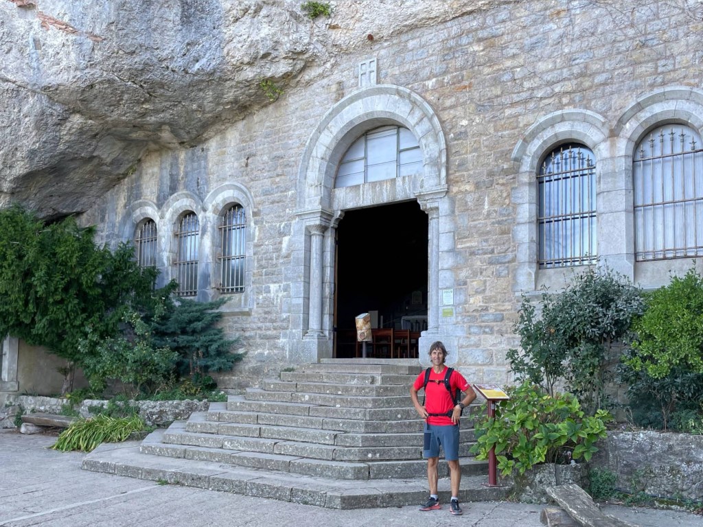 We set off quite early before the sun peaked over the ridge, and the first 6 kilometres of the walk were through forest along the bottom of the craggy mountainside. On the side of the cliff, we could see the shrine and grotto of Ste-Marie Madeleine, a place of pilgrimage since the 5th century. It is said that Mary Magdalene took refuge here and lived as a hermit for the last 30 years of her life.