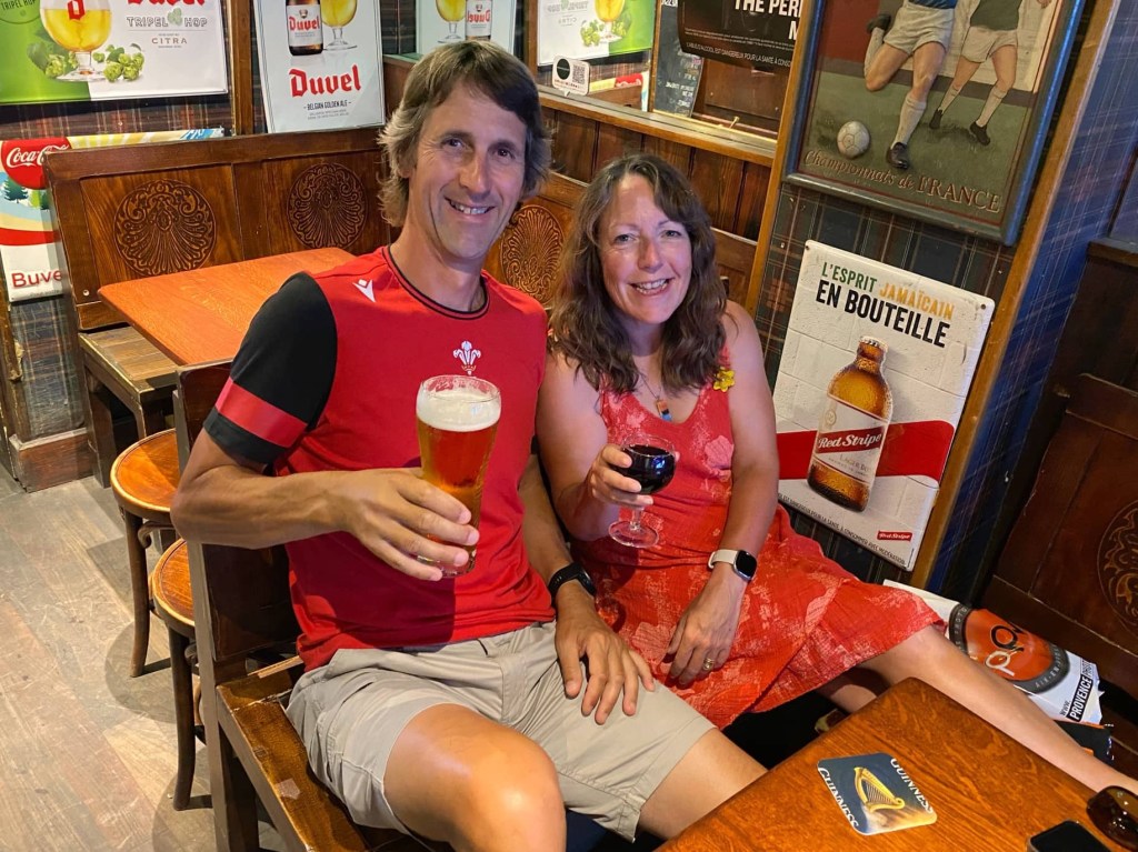 By now, it was almost time for the rugby… one of the main reasons we were visiting a town on this day, with John wanting to watch it in a bar. We’d passed another little square with bars more like British pubs, and we ended up in one with an Irish sounding name. Football was showing on the TV in the front bar, but the barman put the rugby on in the back for us. We ended up watching both the Wales and England games there, and the place got quite lively as the afternoon turned to evening.