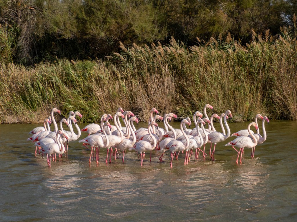 The bird reserve covers 148 acres of natural marshes, and the paths through it allow visitors to get close to the wetland birds. Immediately after leaving the entrance we came across flamingos, storks and egrets. There were thousands of flamingos snoozing or eating in the lagoons. When they took to air they were a stunning sight to behold with their huge black and pink wings.