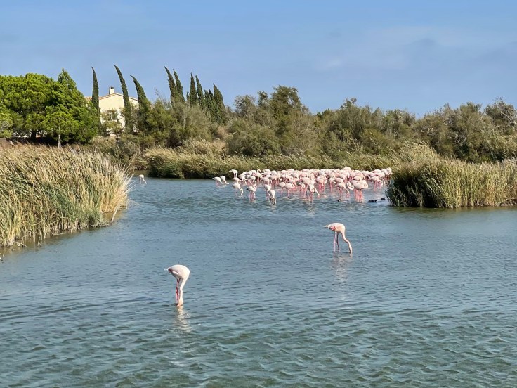 Today we visited a bird reserve in the Camargue, Parc Ornithologique de Port de Gau. Thankfully, the forecast showers stayed away. However, although it was sunny and warm, it was incredibly windy. We’ve been blasted by dusty salty air all day and I feel very grubby and dishevelled. Poor Bertie is filthy too.