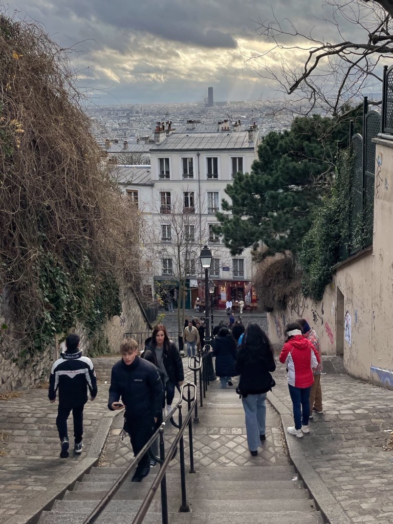 It felt a bit quieter now as we headed back down the dozens of steps, enjoying the wall art and glimpses of views of the city below.