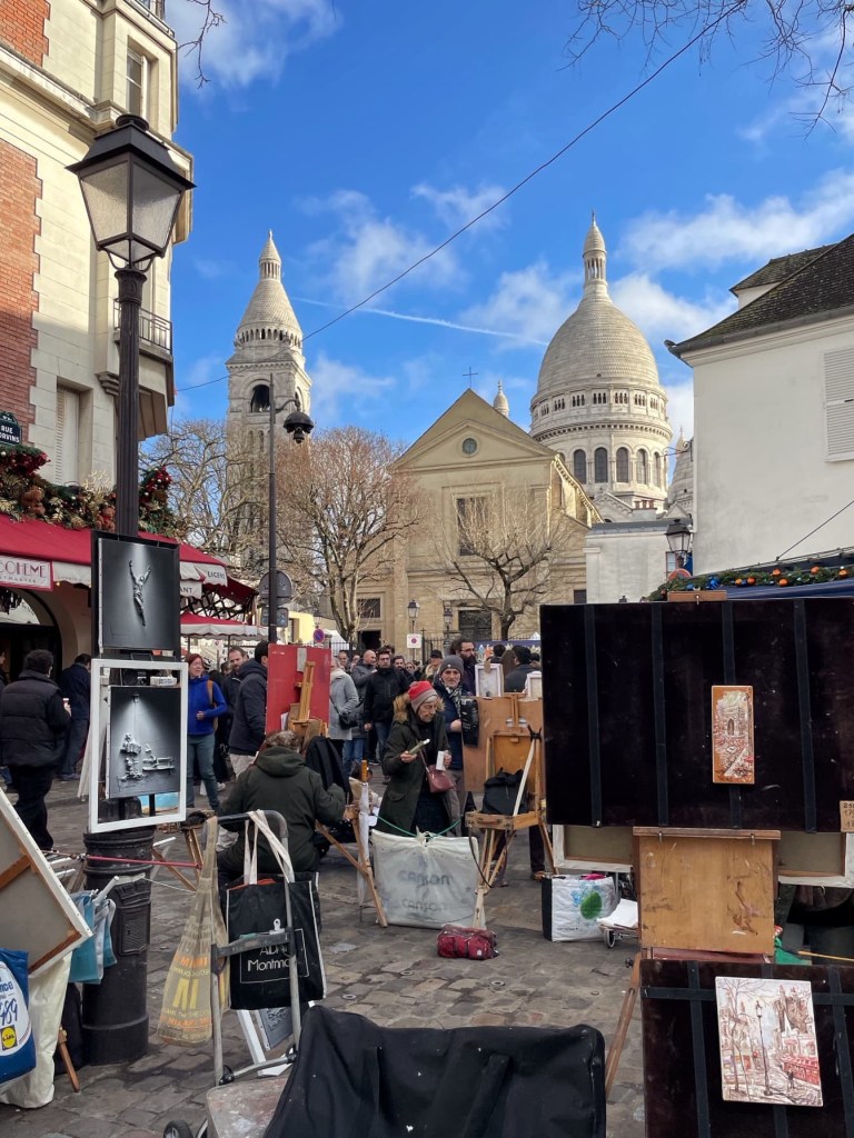 We headed uphill via several flights of steps to the Place du Tetre. This square is full of artists selling their pictures and painting tourists, and surrounded by bars and cafés. It was bustling and had a lovely atmosphere, but was a bit too peopley for me 😊