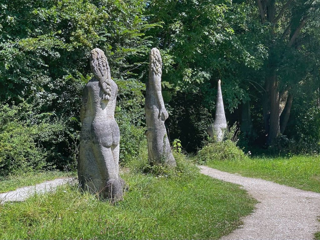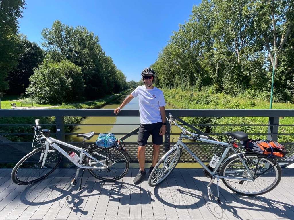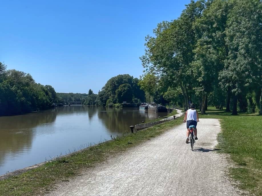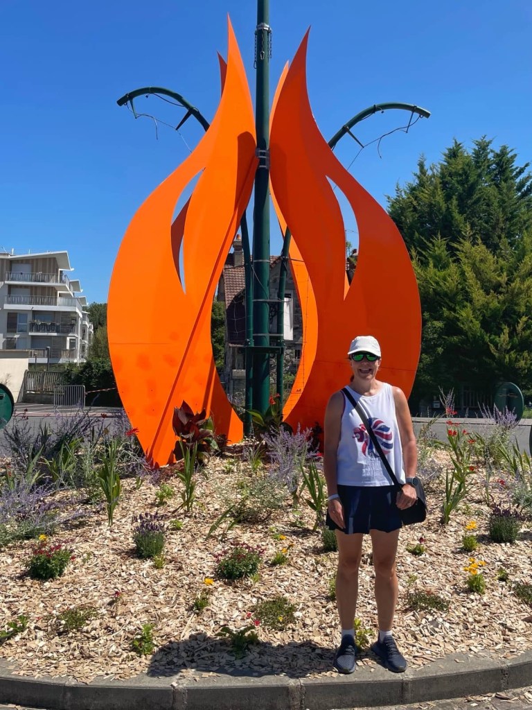 The event was at 15.30, so we spent the morning doing our washing, preparing the bikes, and getting everything we needed together. We then cycled the 10 miles to the nautical stadium at Vaires-sue-Marne, following the River Marne and stopping to look at a sculpture park en route.
