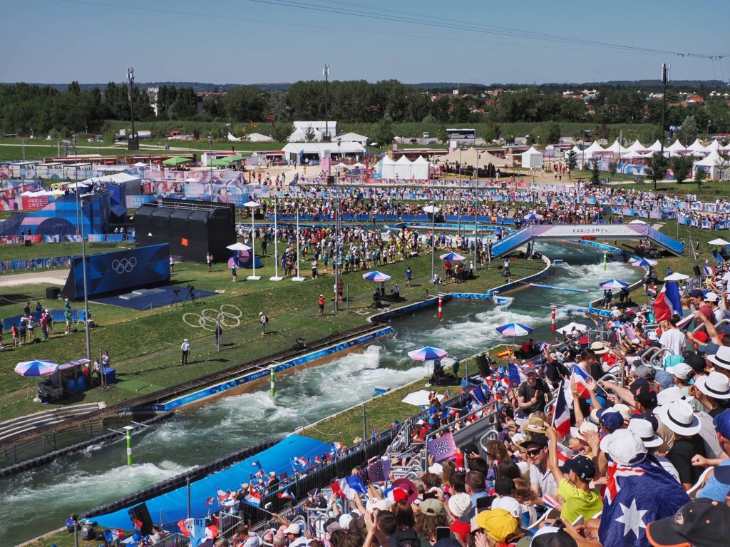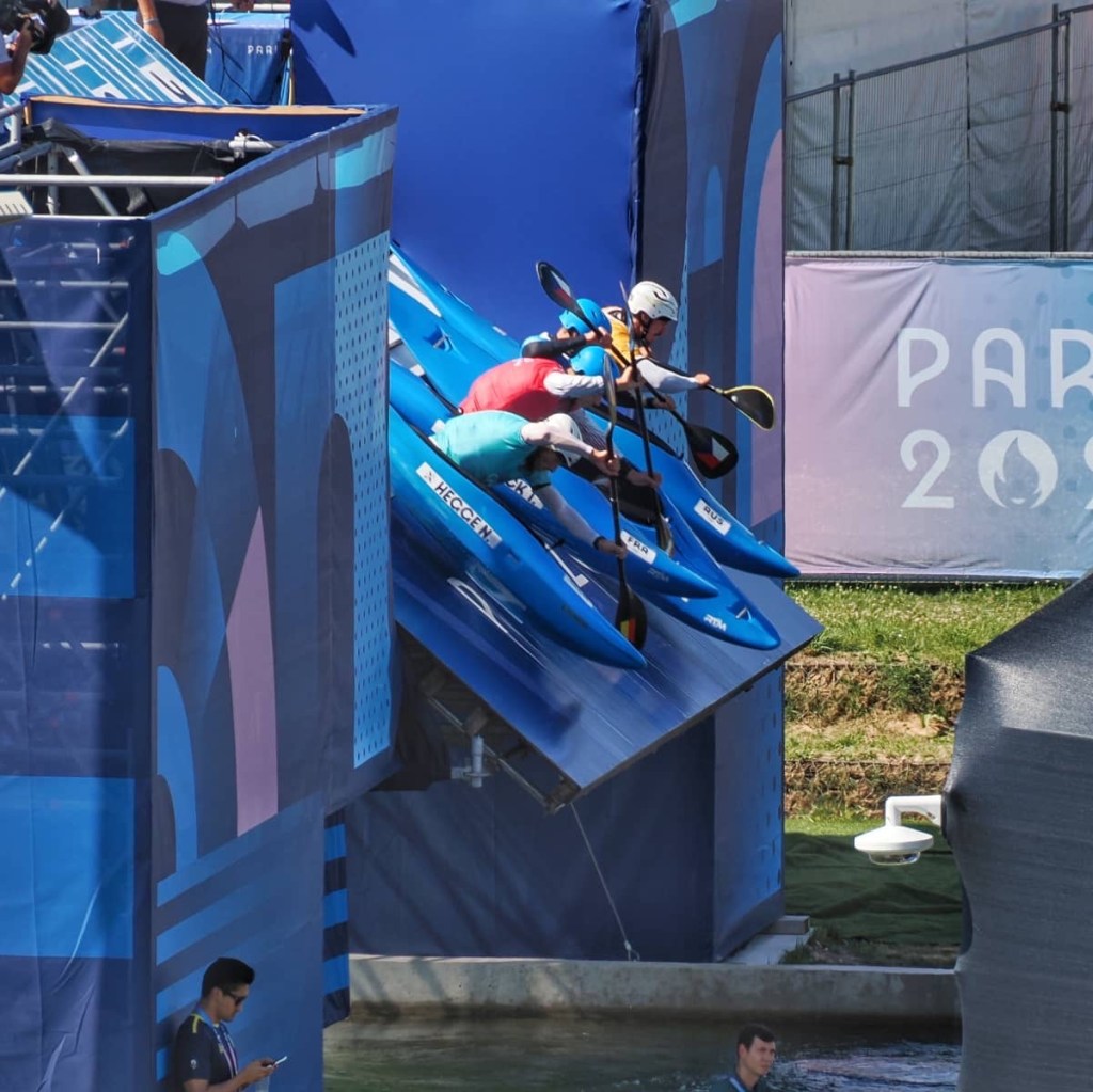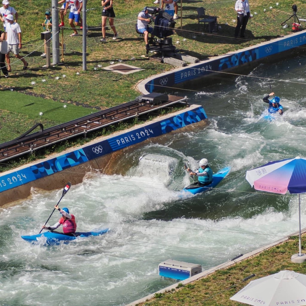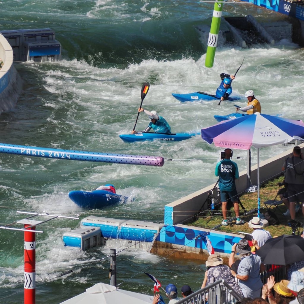 In each heat, we watched as the paddlers jostled for position, rolling their kayaks then negotiating the gates. Sometimes paddlers would push each other off a gate, fighting for a place in the next round or, finally, for a medal. Sometimes they even ended up across each othersβ boatsβ¦ the racing was absolute chaos at times!