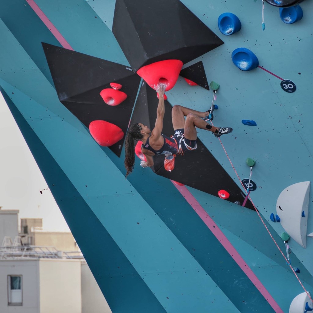 In the overall competition, points were combined for boulder and lead climbing. The bouldering had already taken place and Team GB’s Erin McNeice and Molly Thompson-Smith entered the lead semi-finals in 10th and 19th place after that event.