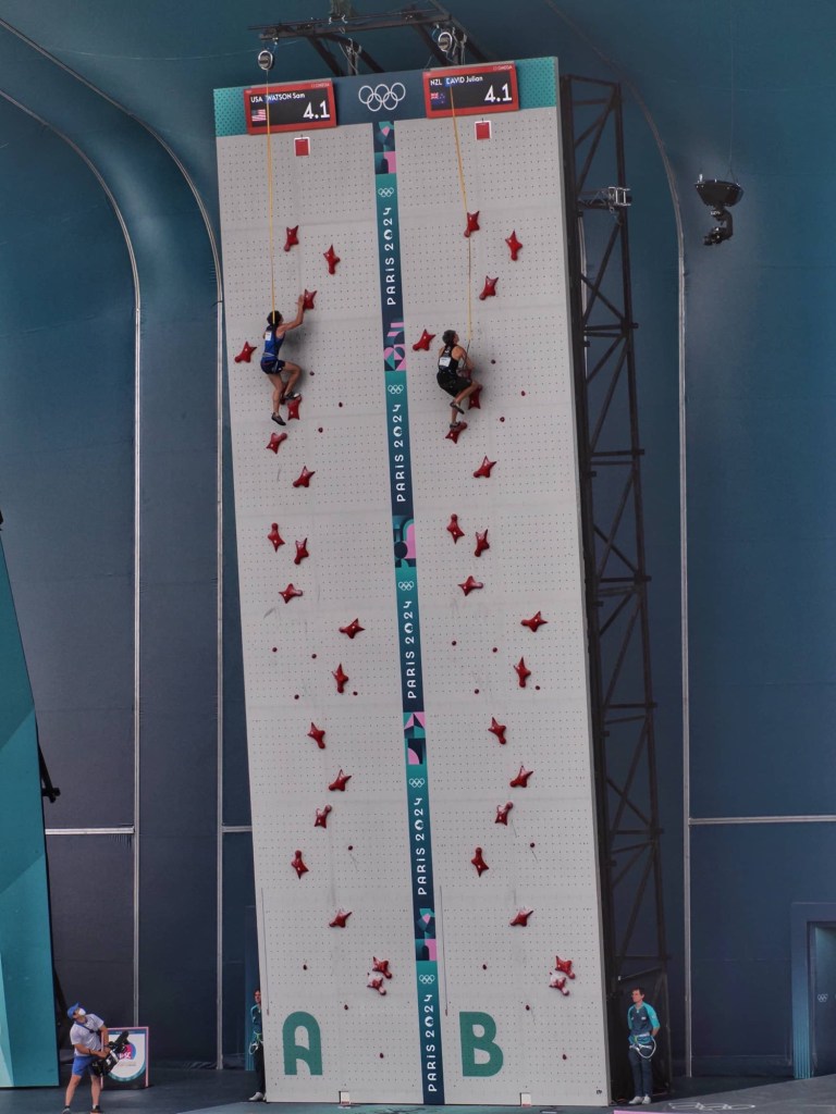The climbs were fast and furious, and the competitors were mostly really close, with climbs lasting less than 5 seconds. Sam Watson from the USA had set a world record of 4.75 seconds in the previous round and was therefore top of the 8 finalists. He won his semi-final but lost in the quarter final to go through to the ‘small final’. He eventually secured the bronze medal with a new world record of 4.74 seconds, with the gold medal winner matching his earlier record in the main final. Margins were so small, the tiniest of mistakes mattered and it seemed anyone could have won on the day!
