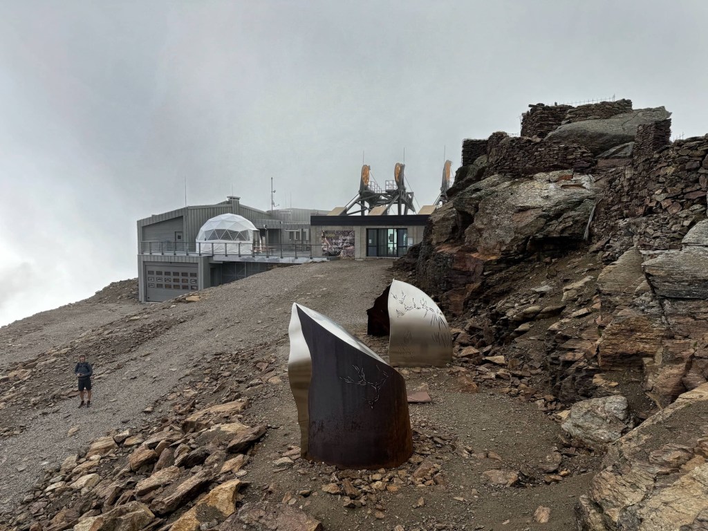 Today we took the Tarlenta gondola and the Peio 3000 cable car up to 3000 metres. Unfortunately, the cloud was down so we couldn’t see the panoramic views promised on the signs. Nevertheless, we had a lovely walk, and saw some stunning scenery.