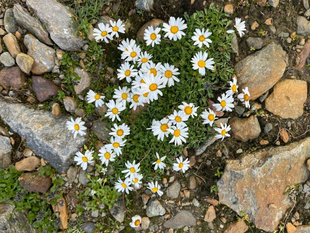 The landscape was rocky and quite barren. However, now all the snow had disappeared, lots of pretty alpine flowers were nestled between the rocks. It’s amazing how they manage to thrive with such a short growing season.