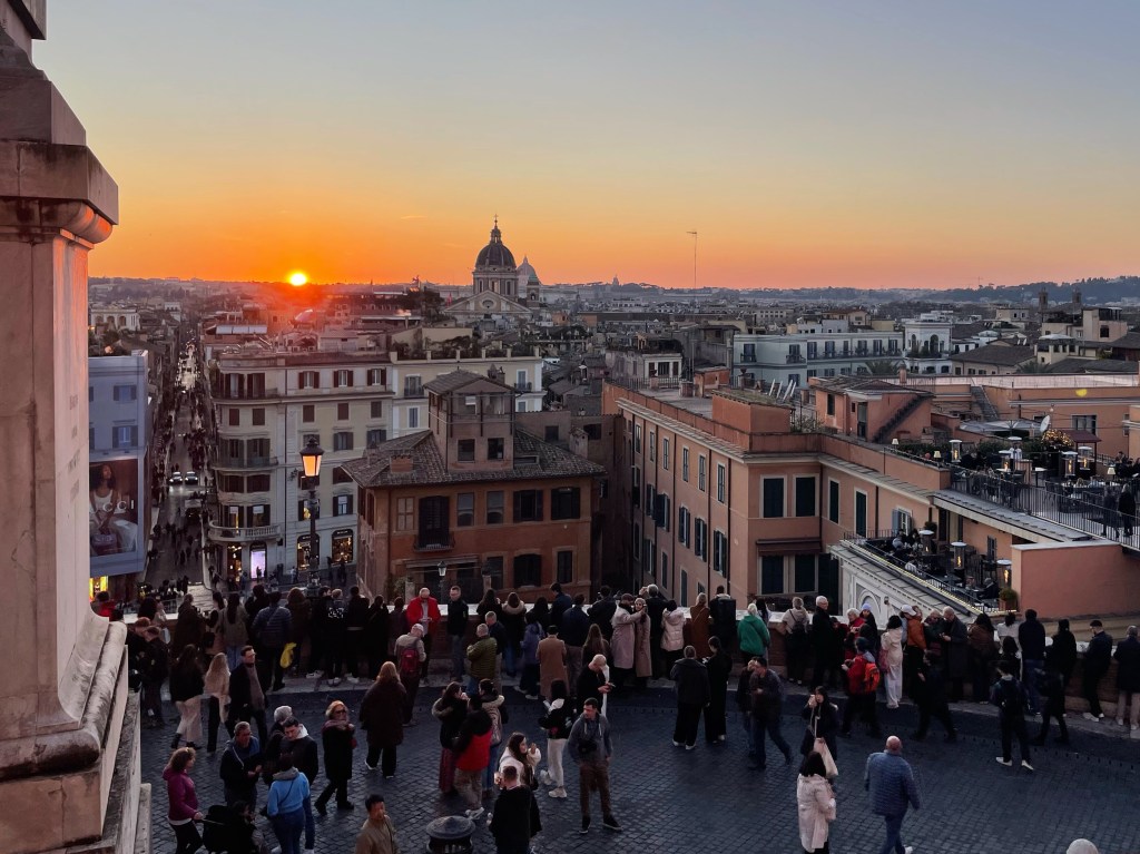 We got off the bus near the top of the Spanish steps. In contrast to this morning, there were people everywhere, watching the sun slip below the horizon. It’s been a lovely day but I’m now ready for something to eat and an early night. I hope I sleep better tonight.