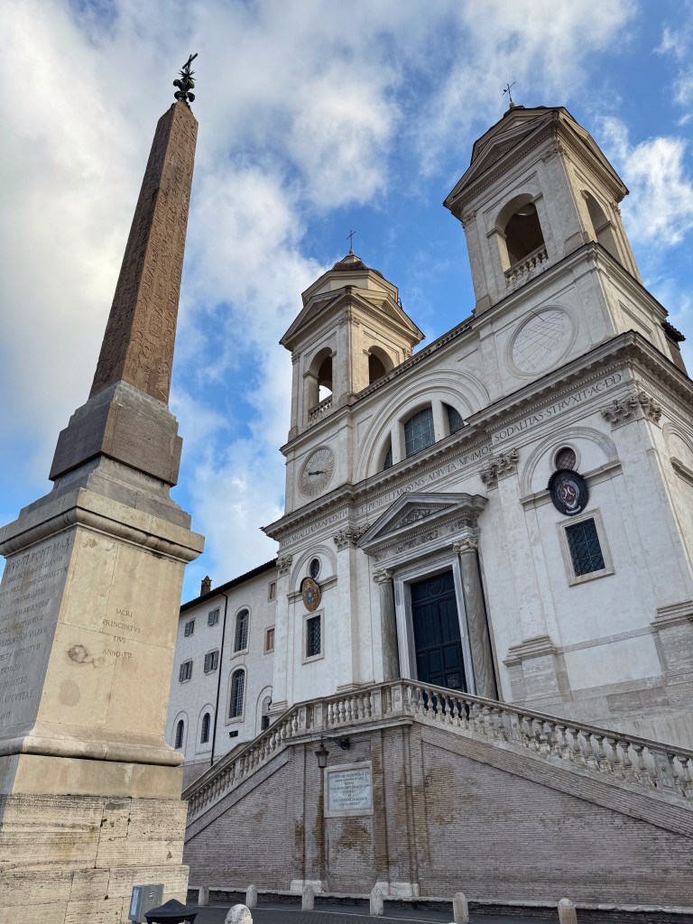 At 8.30, the streets were quiet and peaceful. I easily found my way to the Piazza de Spagna, just 10 minutes from our apartment, then climbed the winding staircase to the top to see the church and enjoy the view over the city.