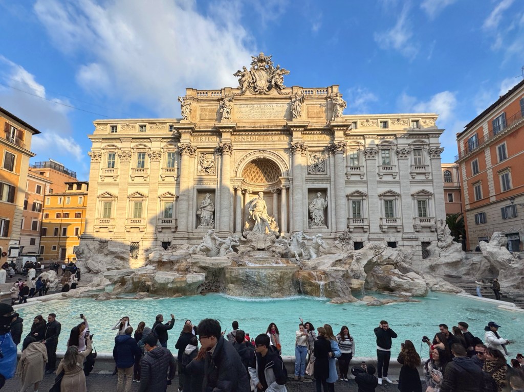 I then walked back in the opposite direction to visit the Trevi Fountain. I’d heard that it’s always busy and I was pleasantly surprised to be able to walk straight up to it. It’s recently been cleaned and was gleaming in the sunshine. I left the keener tourists to the lower level, throwing coins into the water and using their selfie sticks, and turned back to the apartment for a shower and some breakfast.