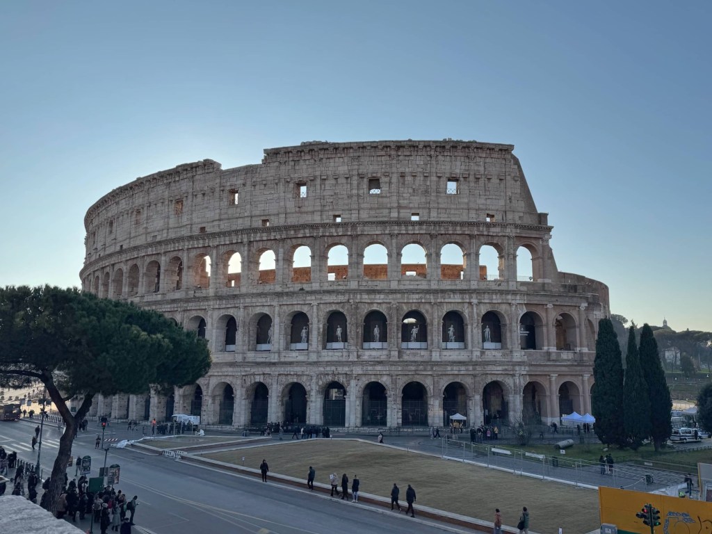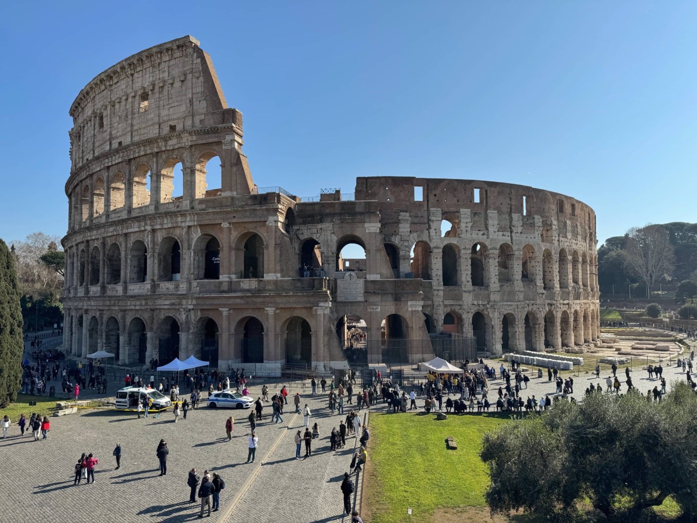 Raring to go after a good night’s sleep, John and I got up early to head to the Roman amphitheatre, known as the Colosseum. We’d booked a tour to cover all the levels, as well as the Roman Forum and Palatine Hill. Kathy walked up there with us, via the Trevi fountain, although she wasn’t doing the tour, preferring to spend the morning exploring and shopping instead.